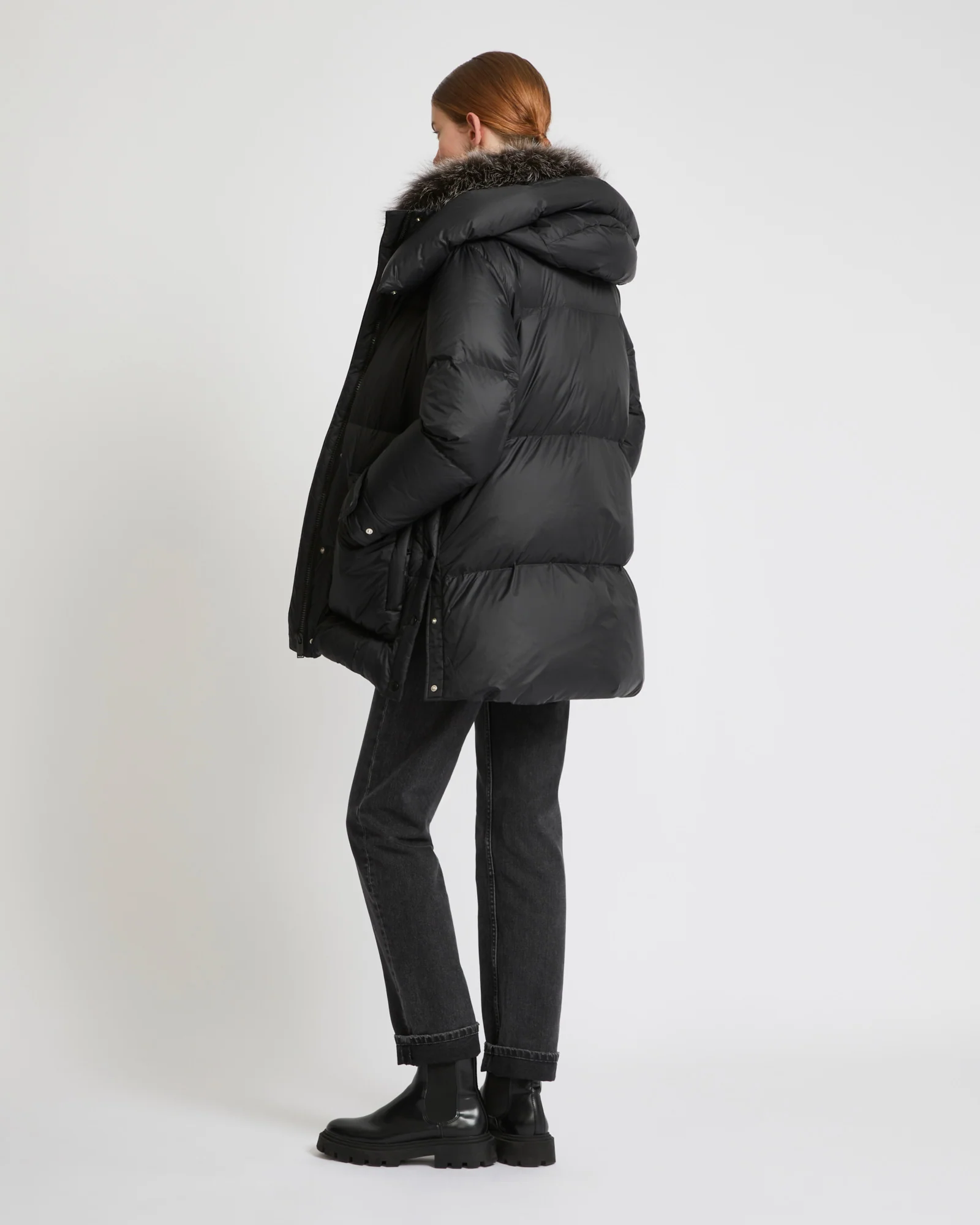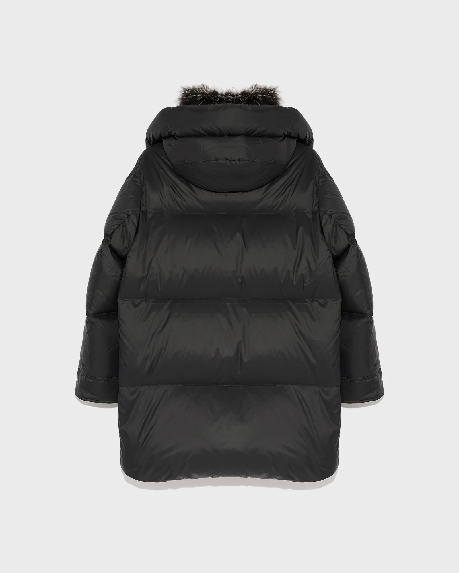 3/4 down jacket in water-repellent technical fabric with fox fur collar trim