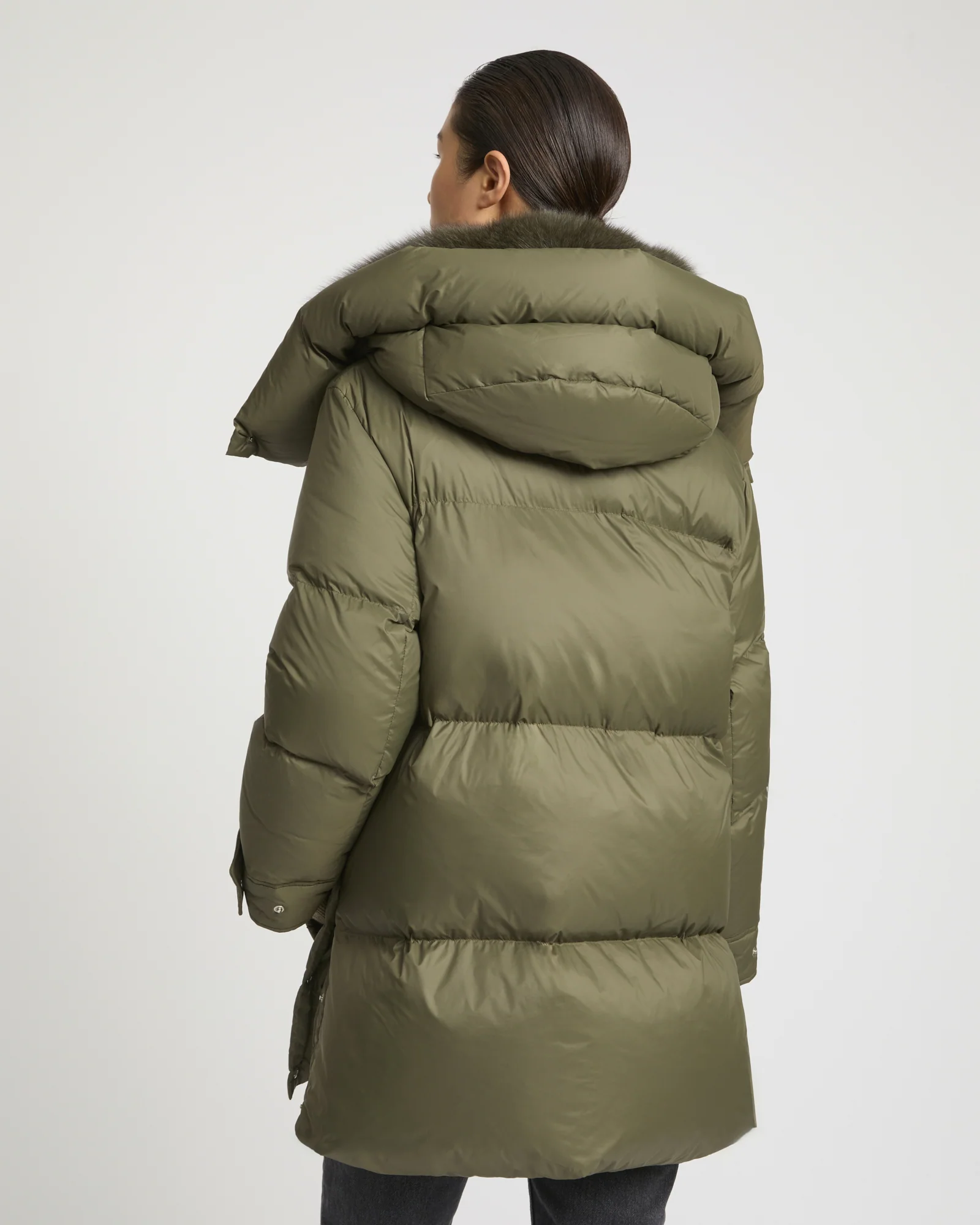– Removable collar trim in fox fur