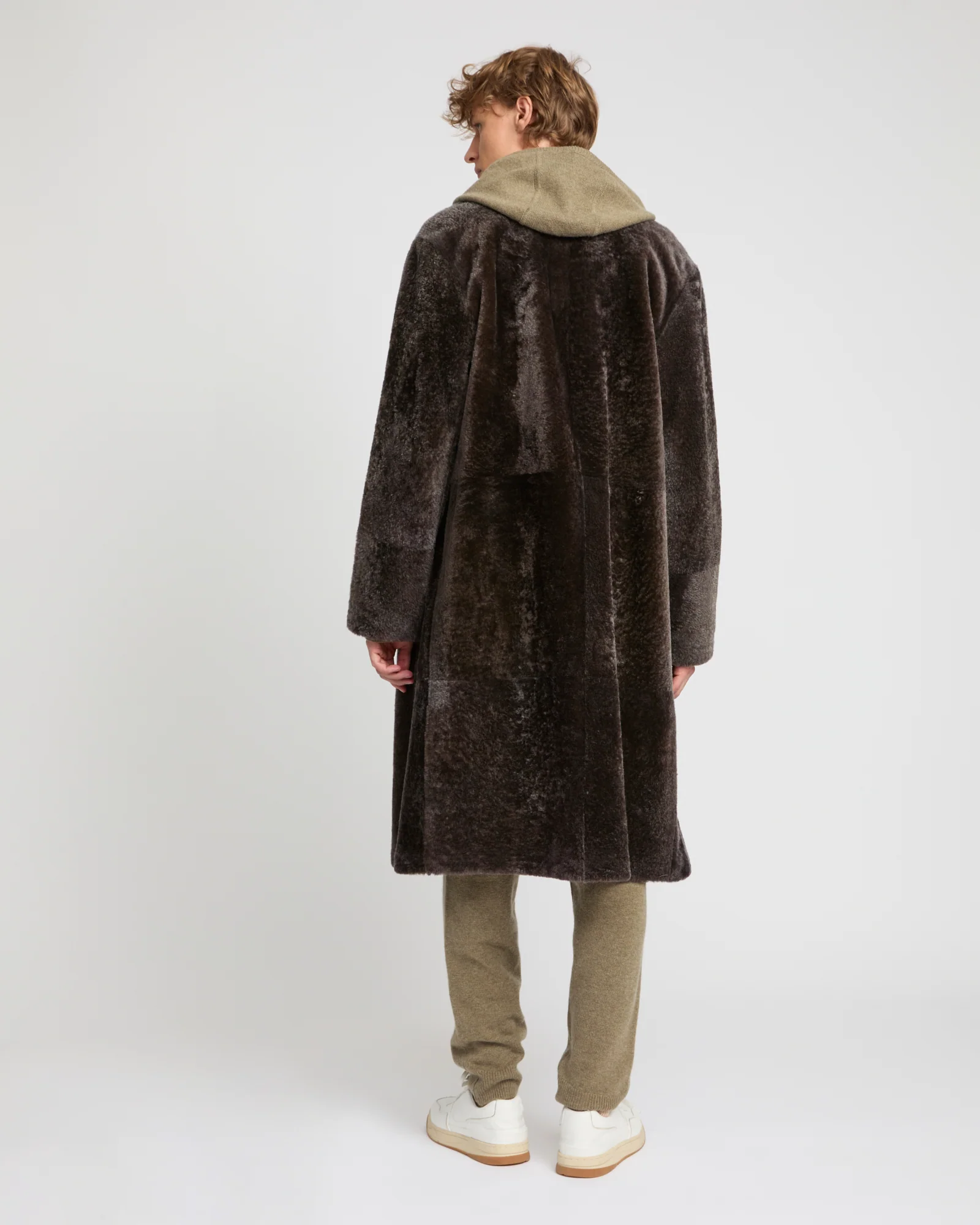 – Wool outer coat with heather brown astrakhan effect