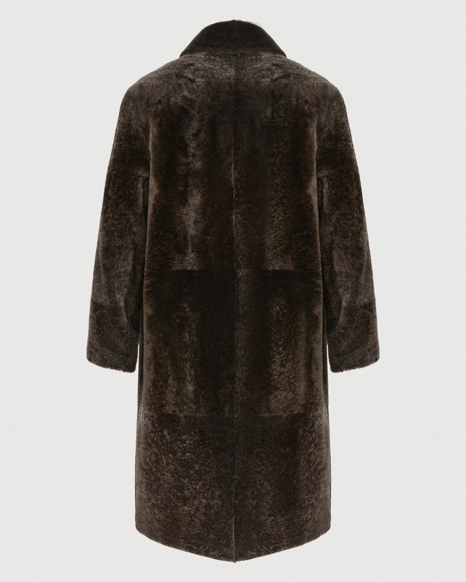 The shiny appearance of astrakhan-effect shearling provides an additional elegance to this double-breasted coat, with a 7/8 length.