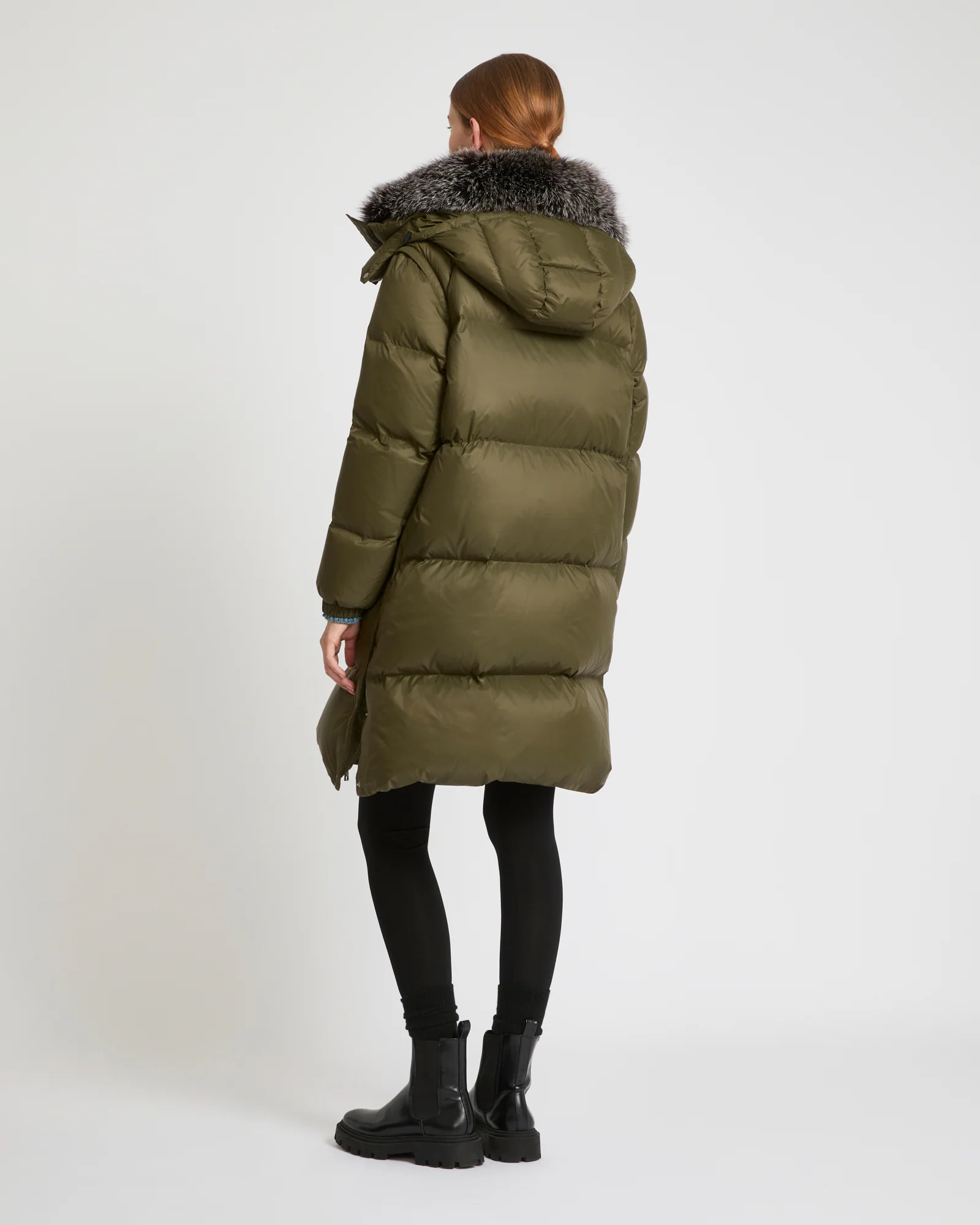 7/8 length down jacket with fox fur collar