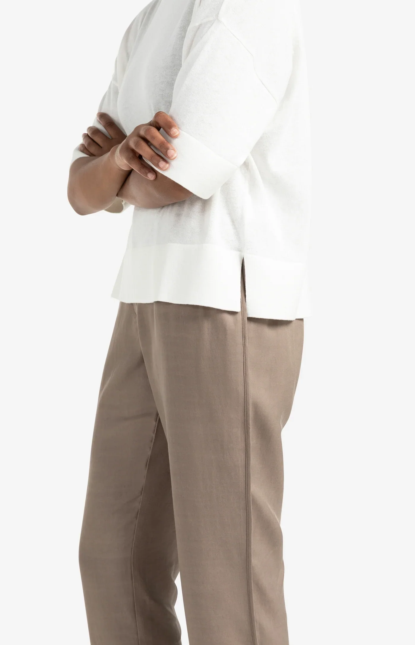 Avec sa coupe ample et décontractée, il donne tout de suite une allure cool et moderne. Parfait rentré dans un pantalon taille haute, porté avec un short ou simplement en mode relax. Composition: 55% Coton 35% Polyester 10% Soie 01-000454/507-YAYA