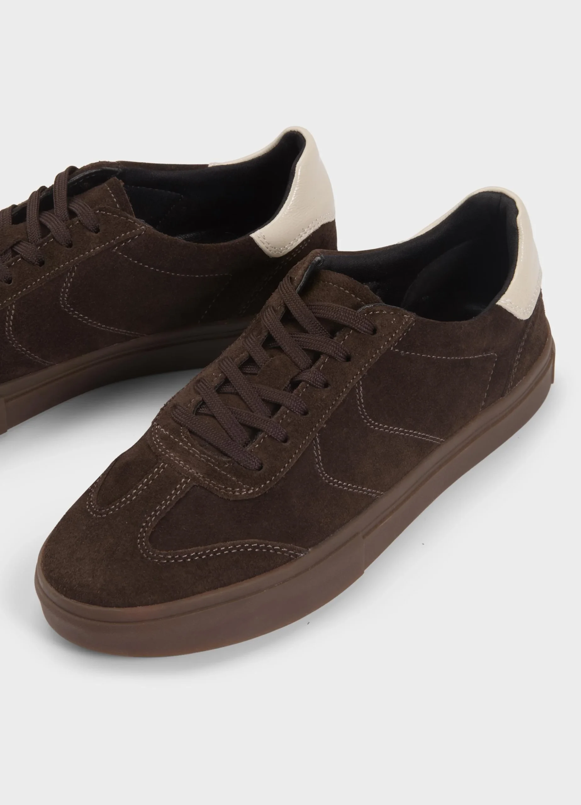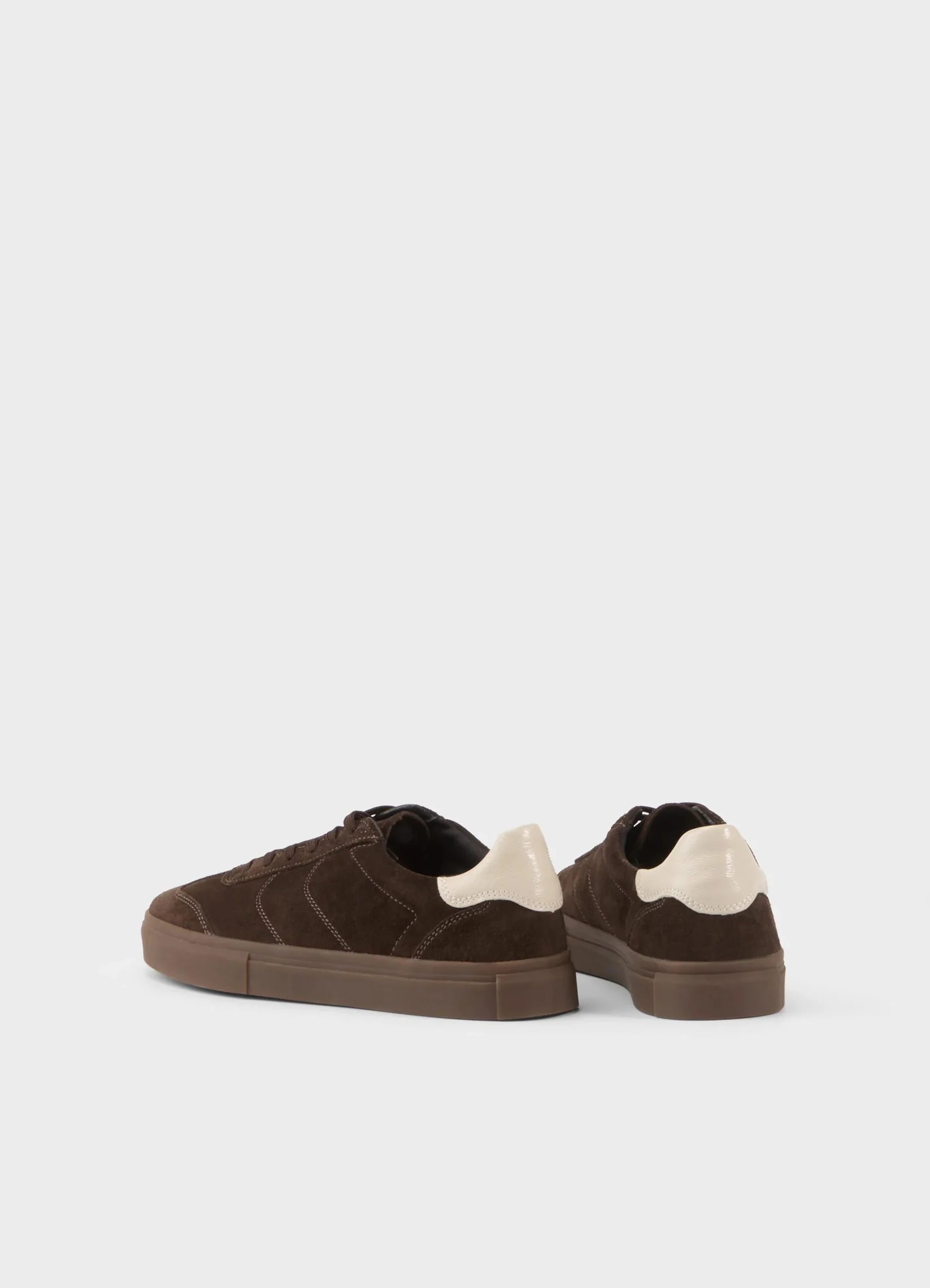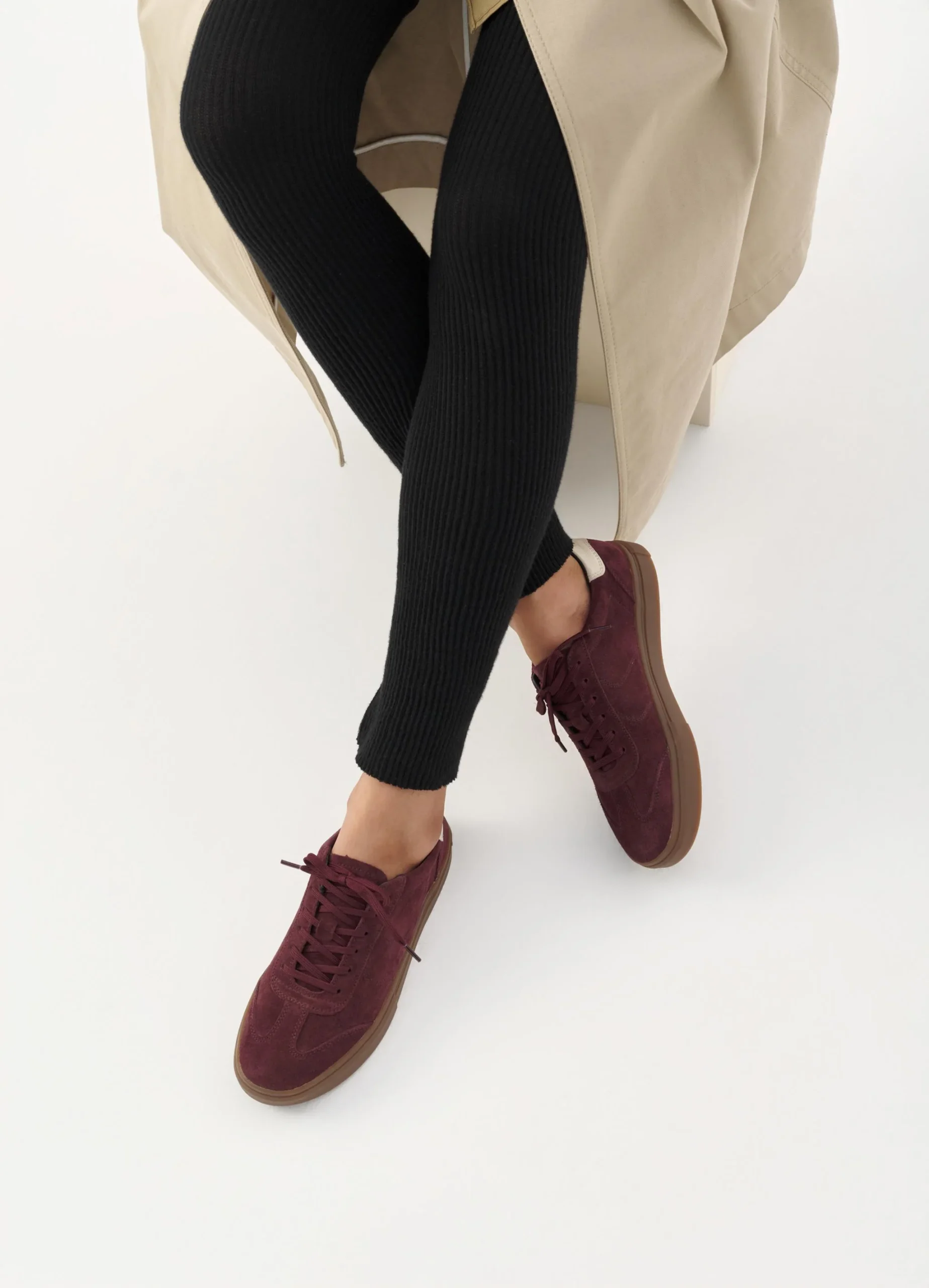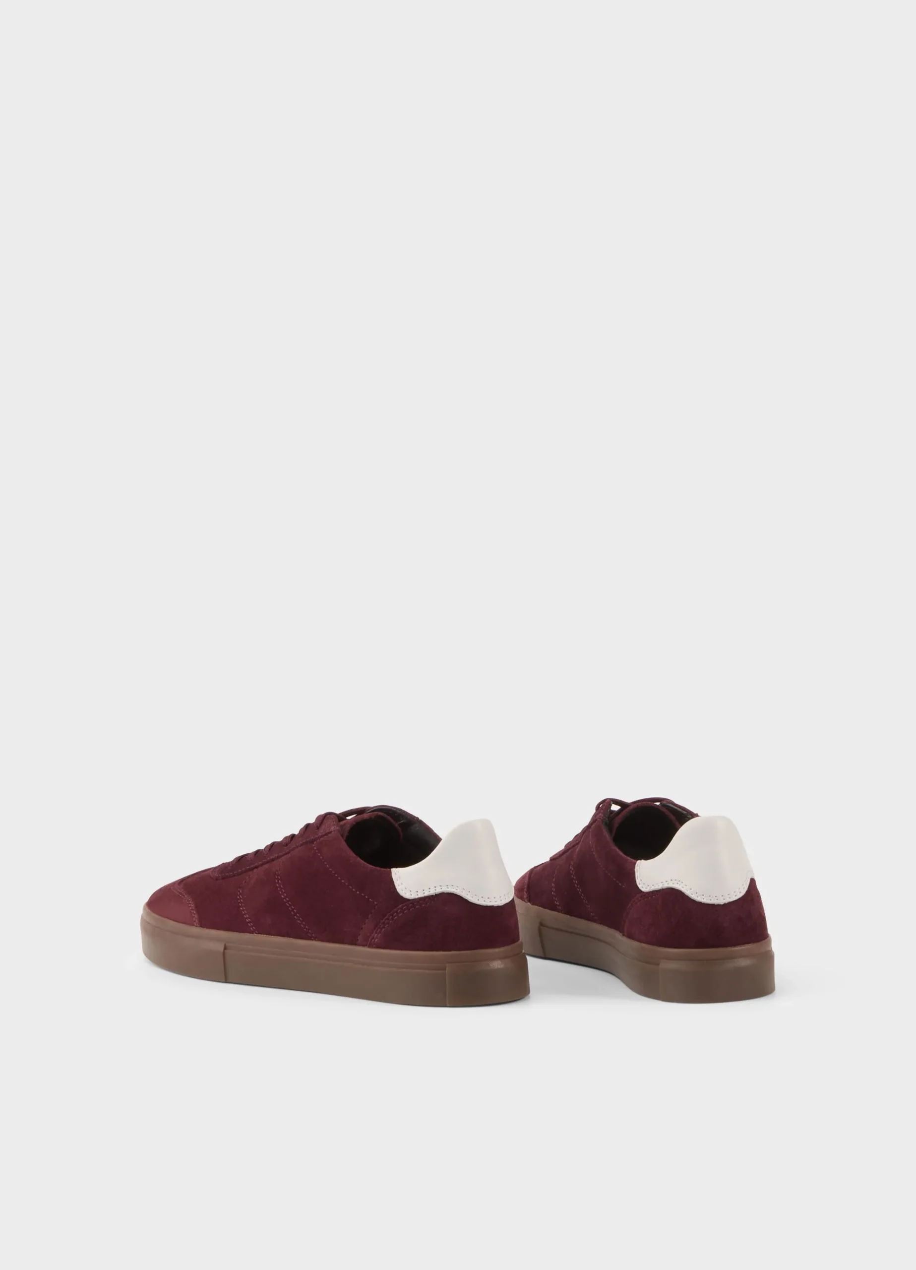 La sneaker cupsole essentielle pour le quotidien. La tige est en suède brun foncé, avec un détail contrastant au talon en cuir beige. Les finitions comprennent un laçage classique et une semelle intérieure en cuir. Le dessus en daim bordeaux, propose un talon contrastant en cuir beige, une fermeture à lacets et une semelle intérieure en cuir.