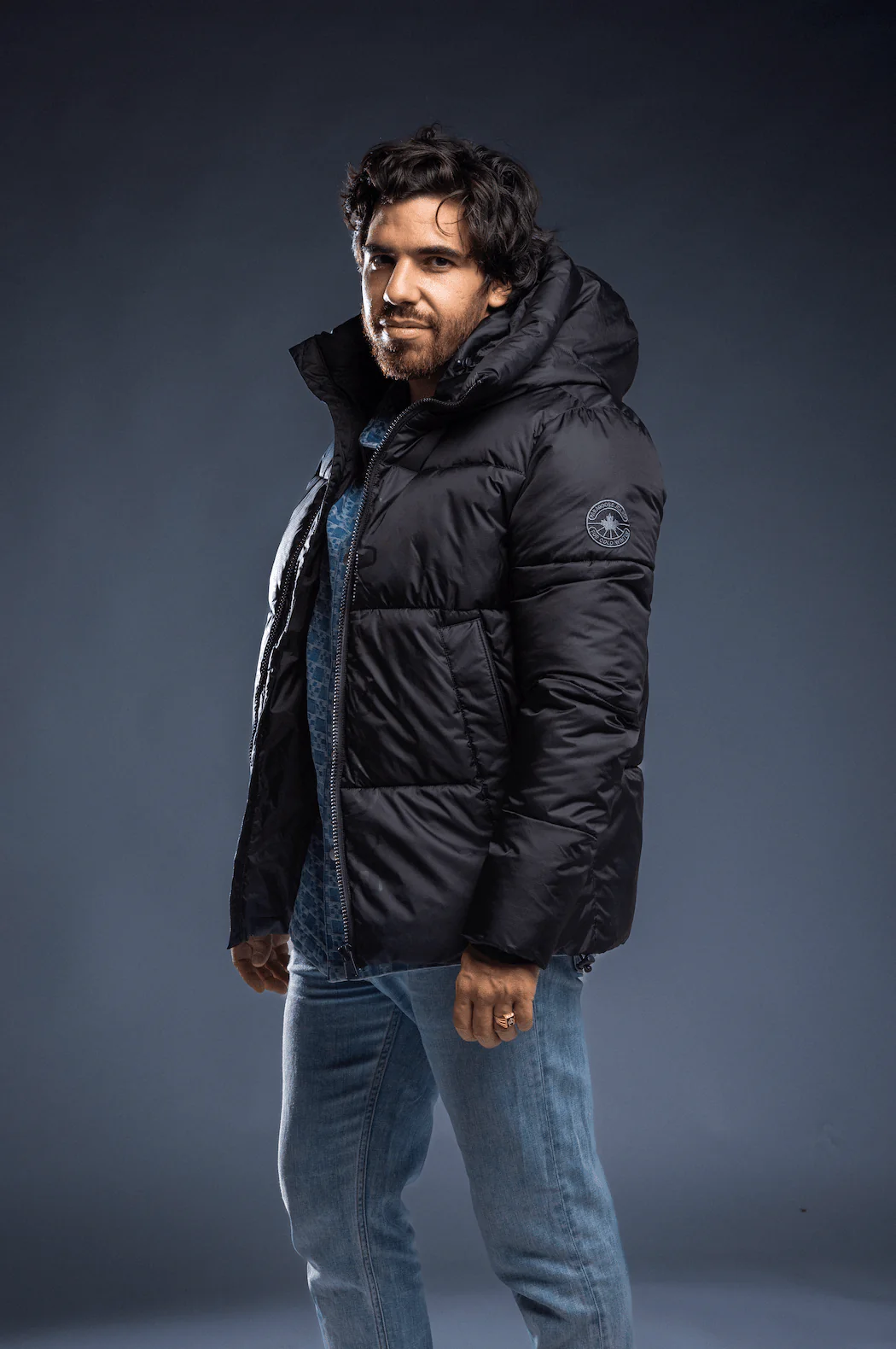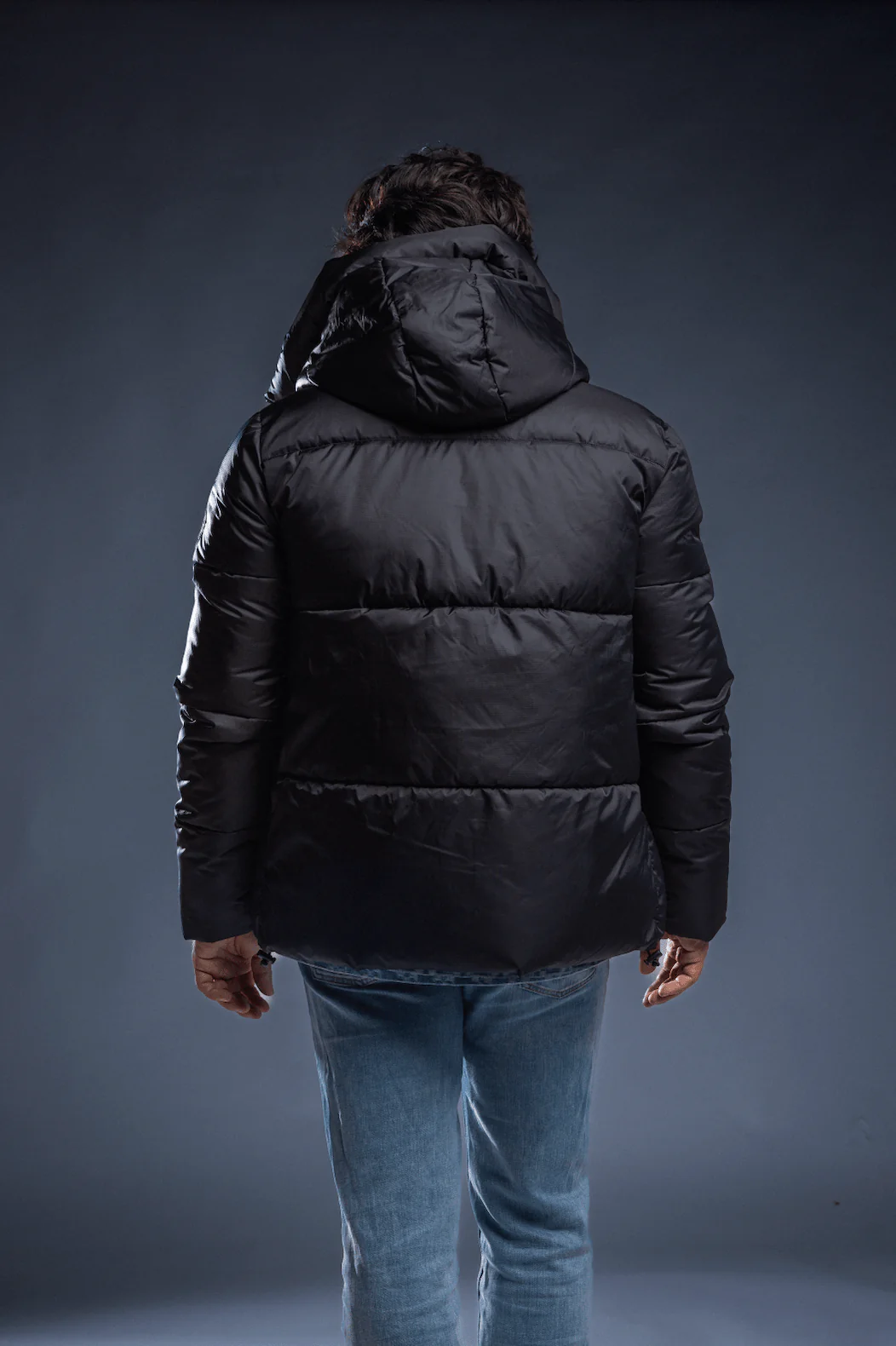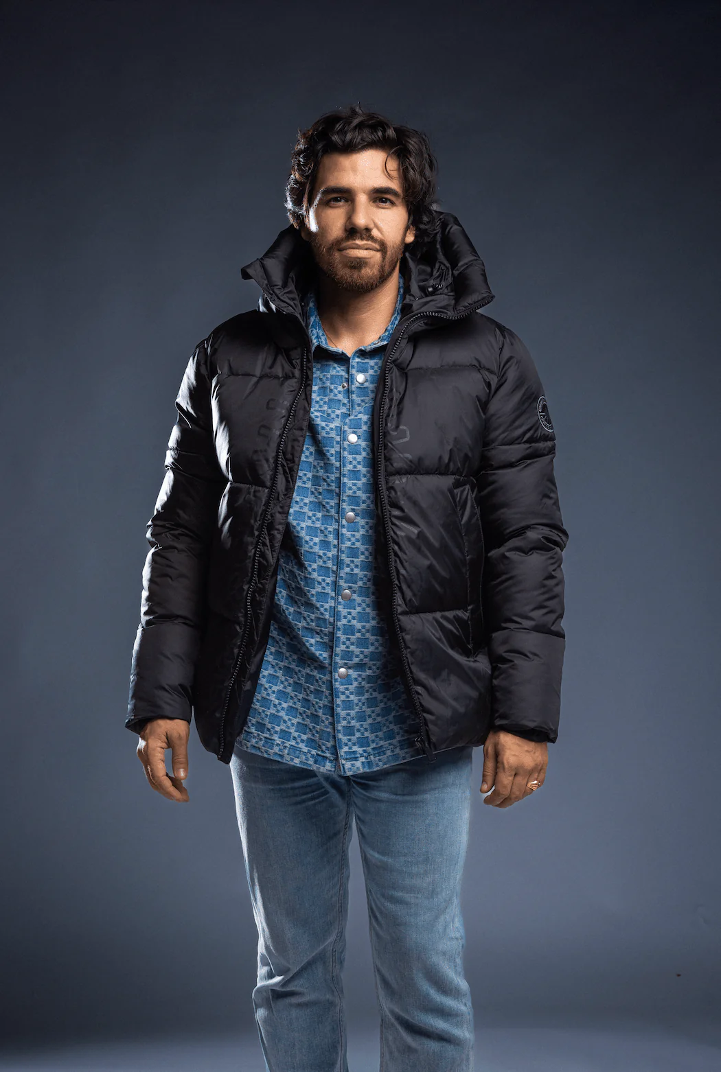 « A » line down jacket with lambskin shearling bib