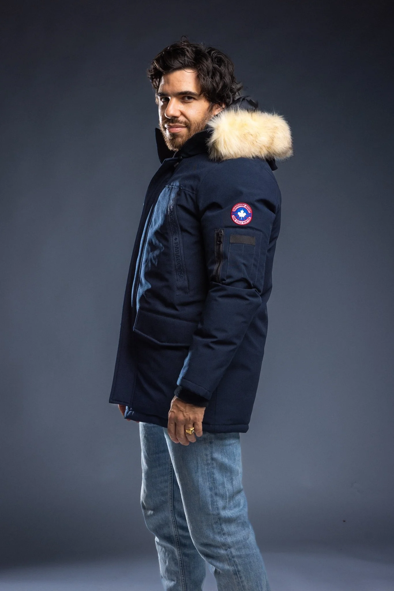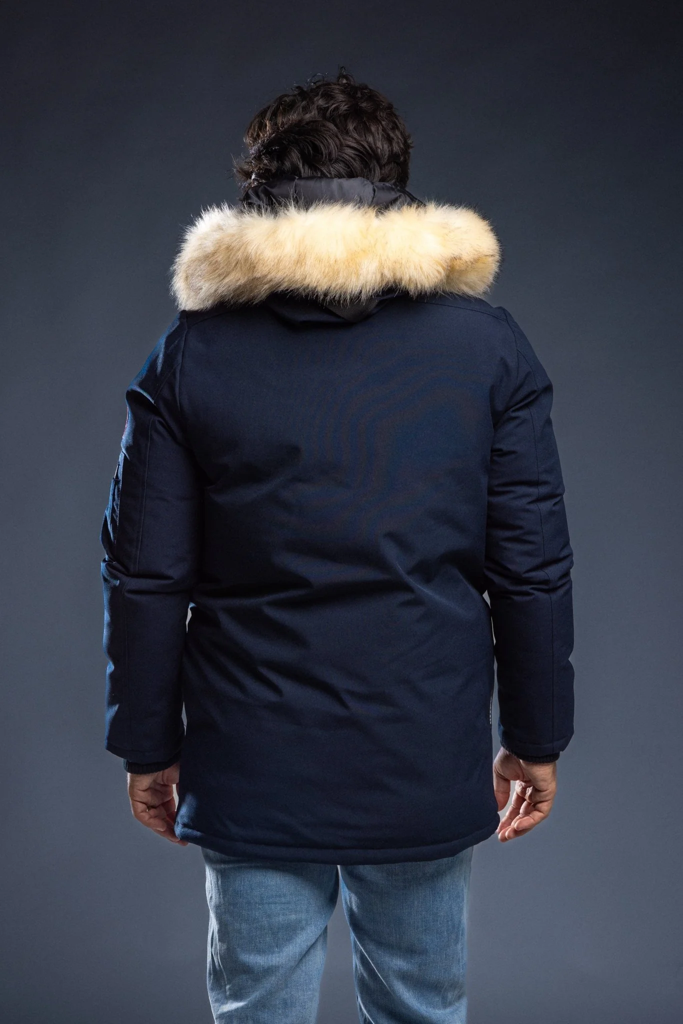 A-line down jacket with a wide lambswool collar