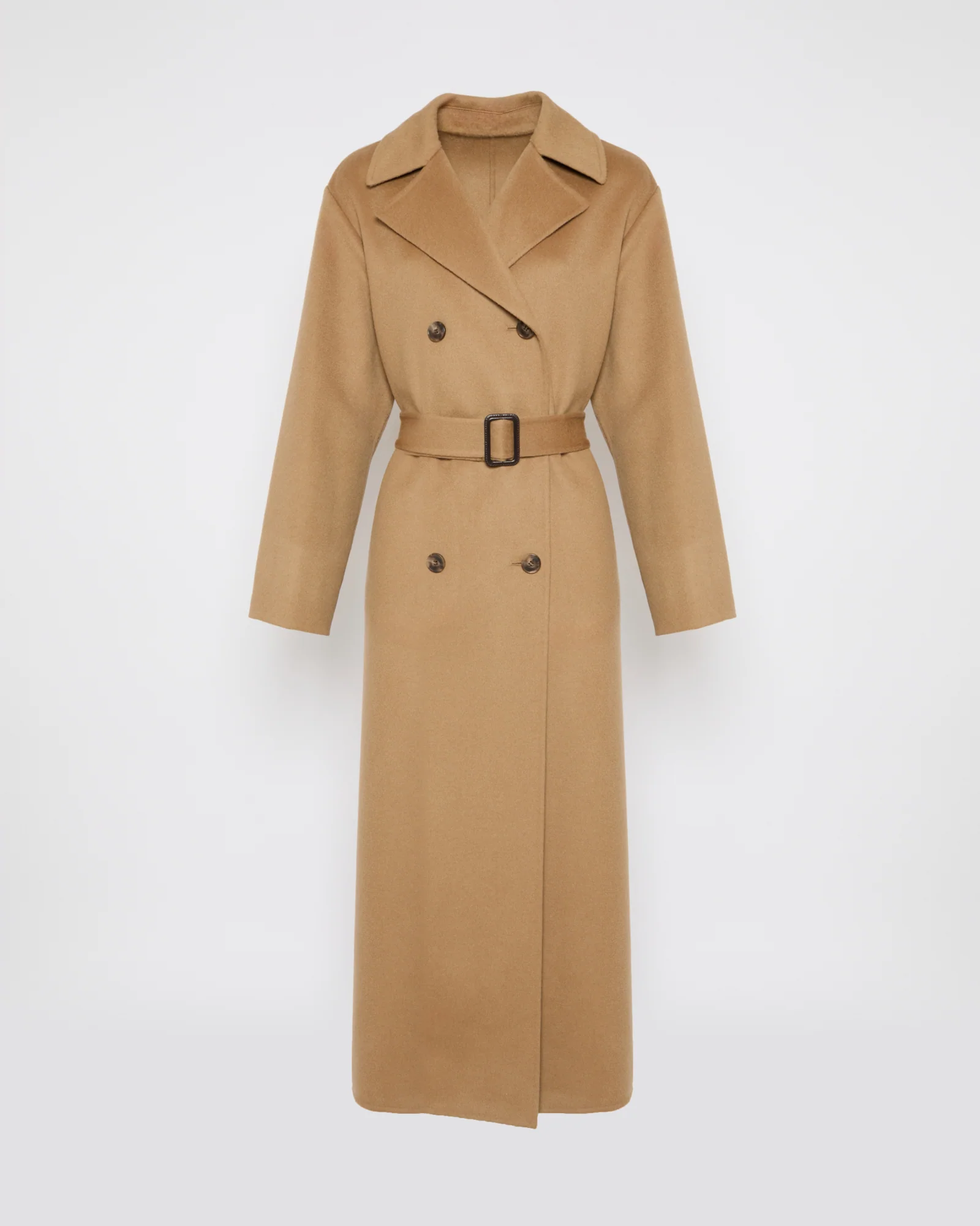 The timeless lines of the trench coat, worked in a luxurious double-sided wool blend, without any apparent stitching. The ankle length provides further allure for this sophisticated yet classic piece. Horn-effect logo buttons complete the look.