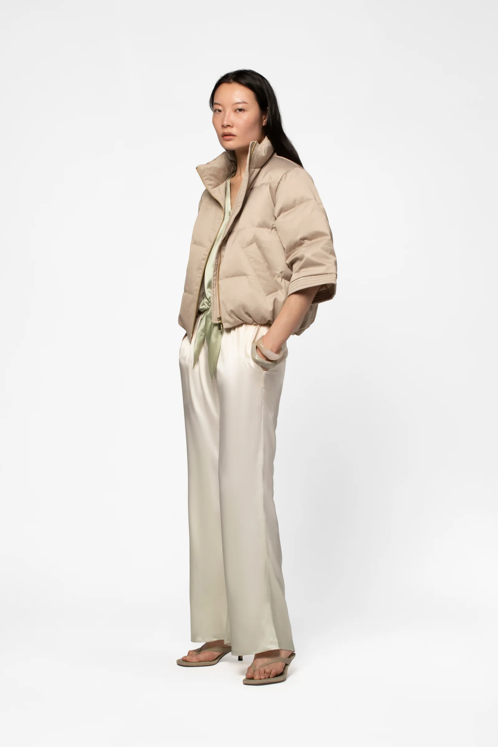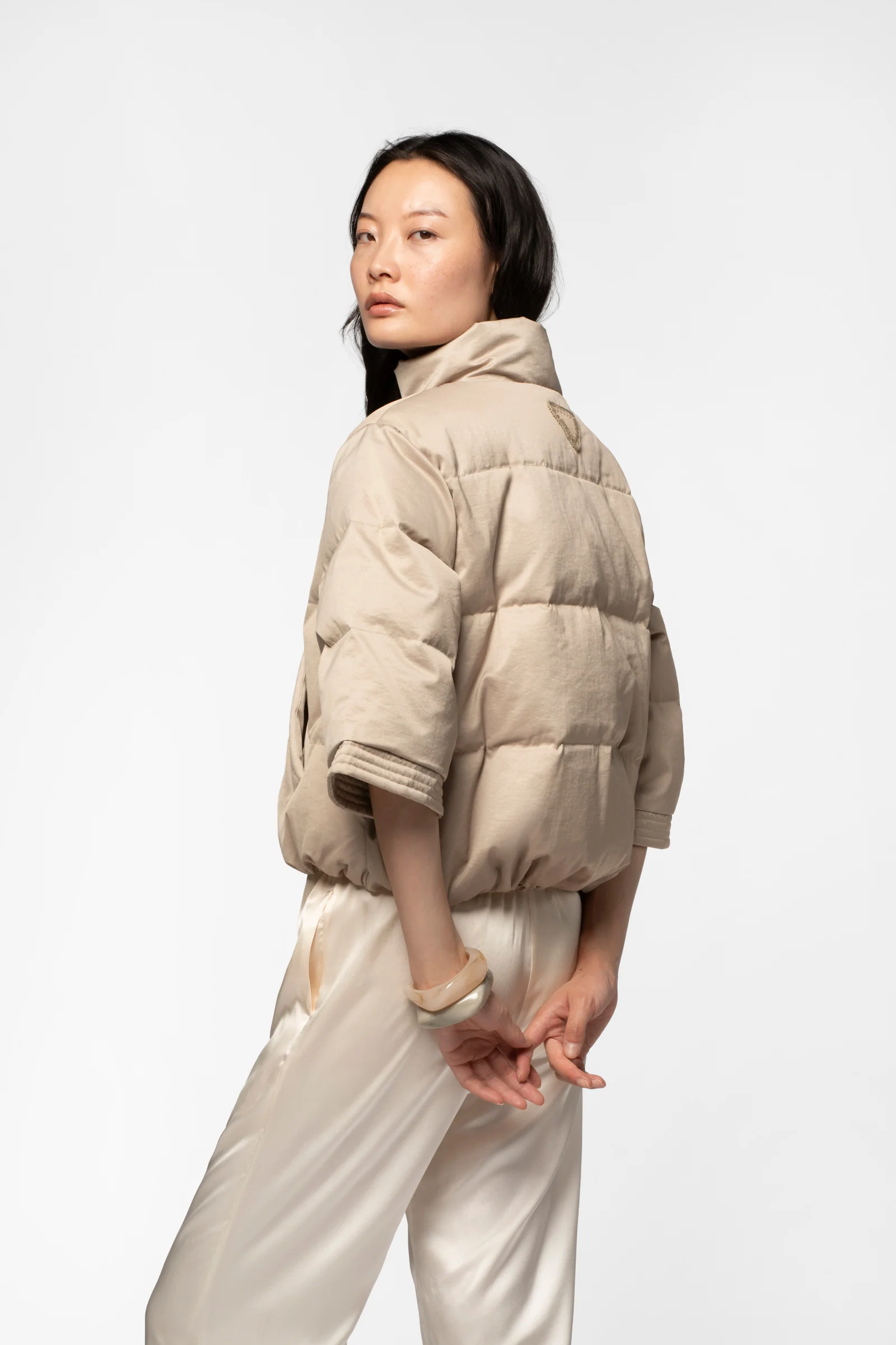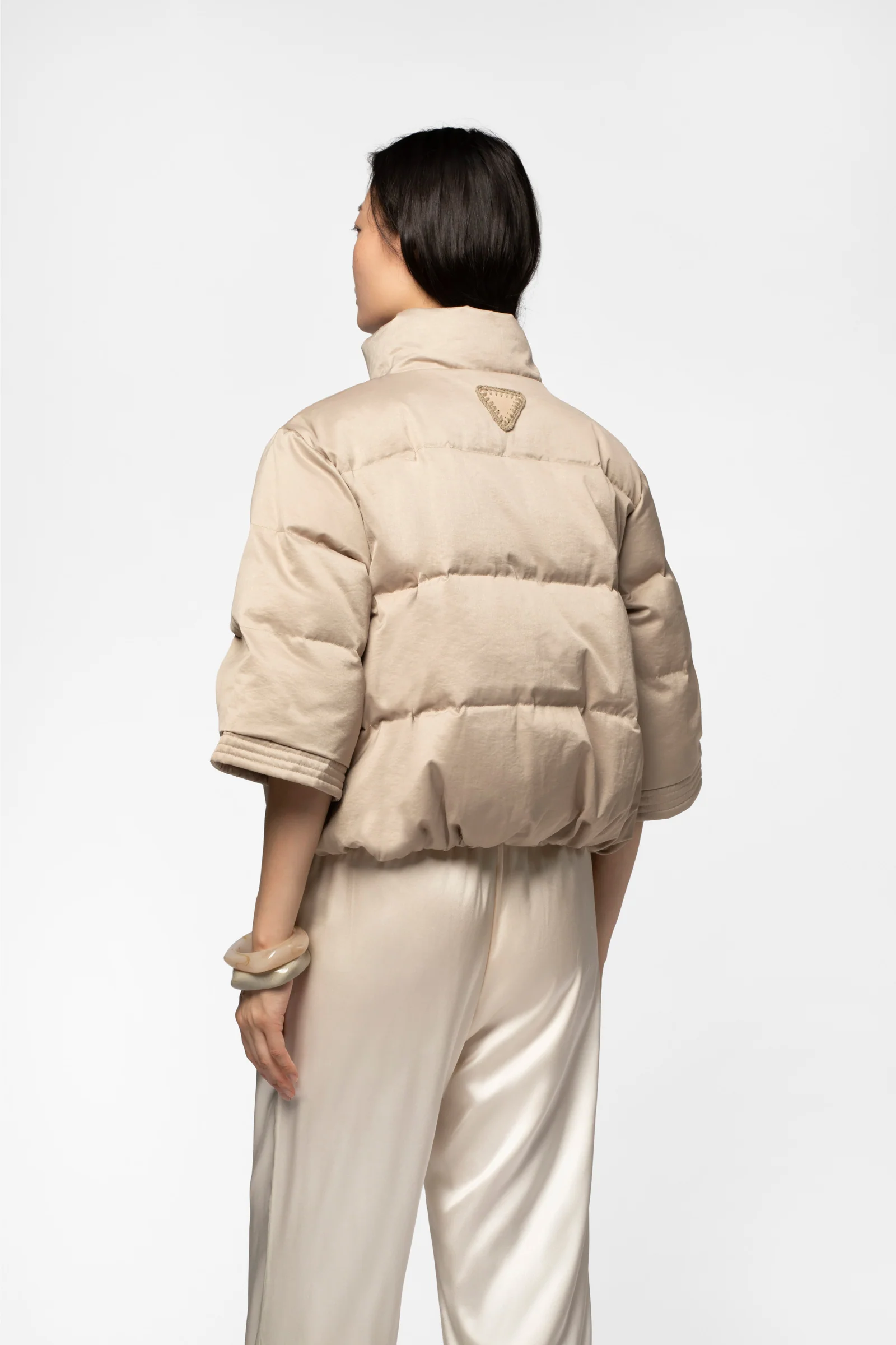 – Doudoune en coton DALIA – Col montant – Manches 3/4 avec double surpiqûre sur le bas des manches – Coupe ample – Fermeture zippée – Bas du vêtement élastique – Surpiqures horizontales – Rembourrage léger – Empiècement en daim avec maille effet crochet au dos – Deux poches passepoilées à l’avant – Une poche […]