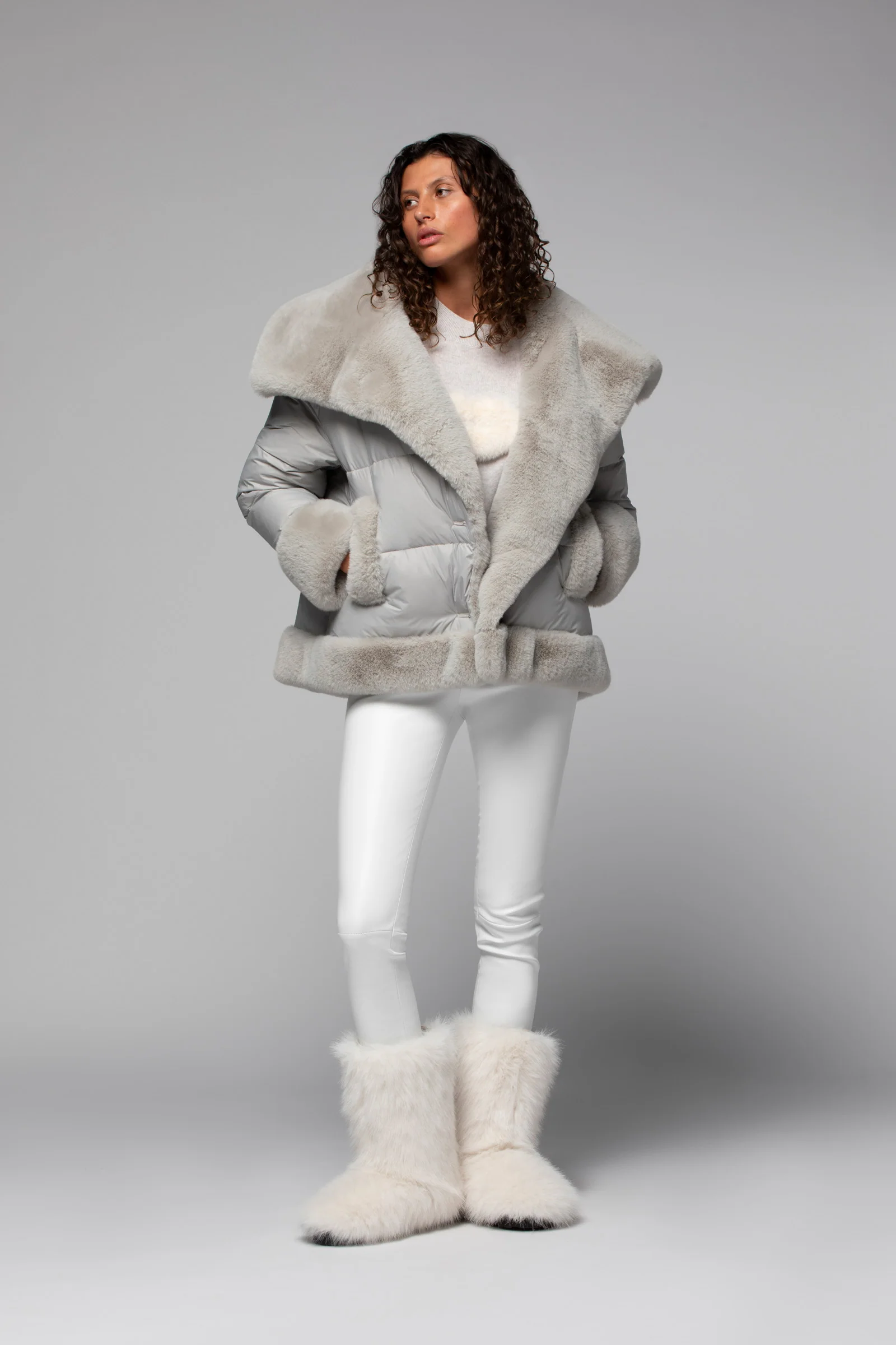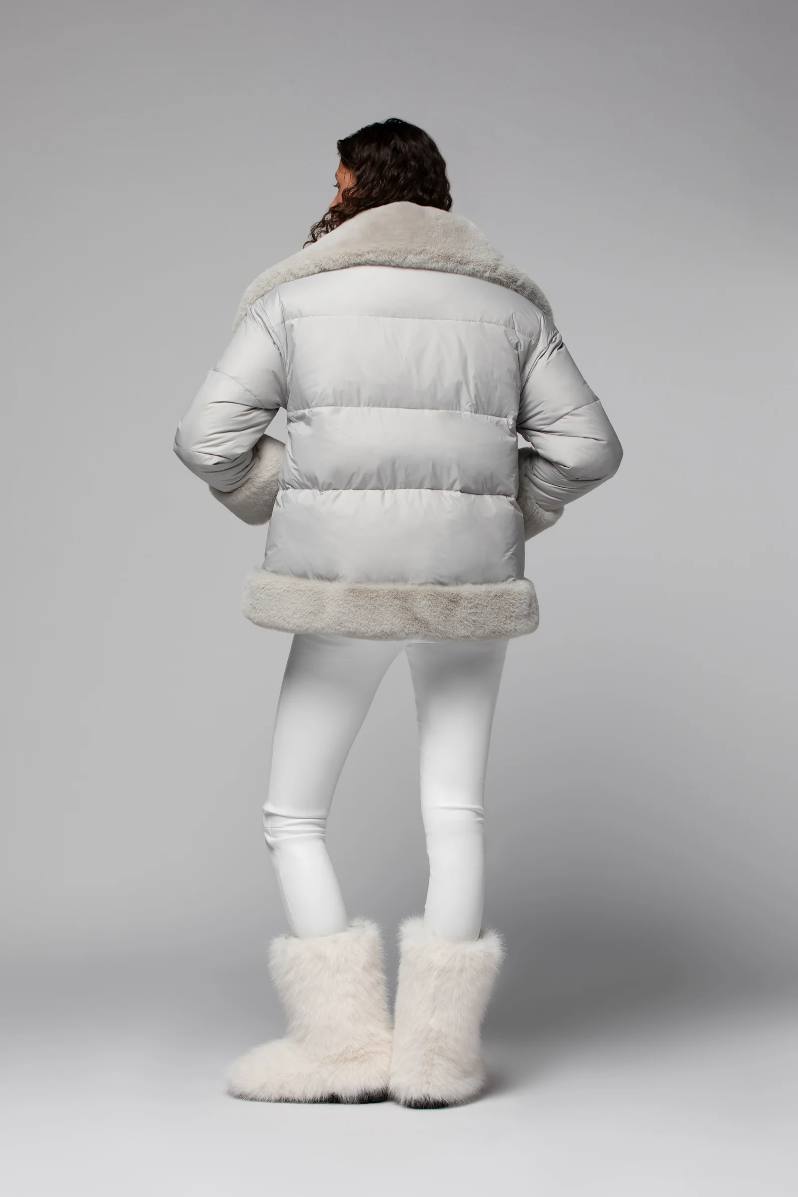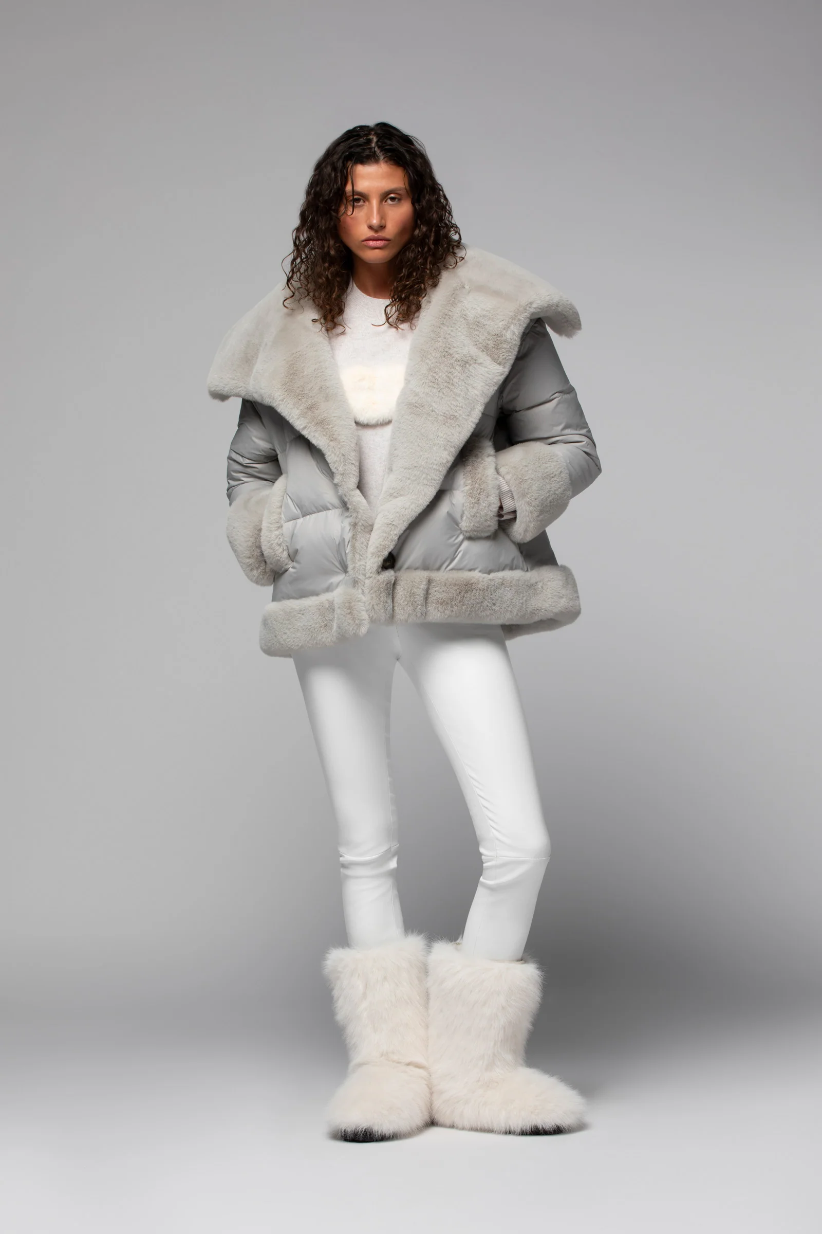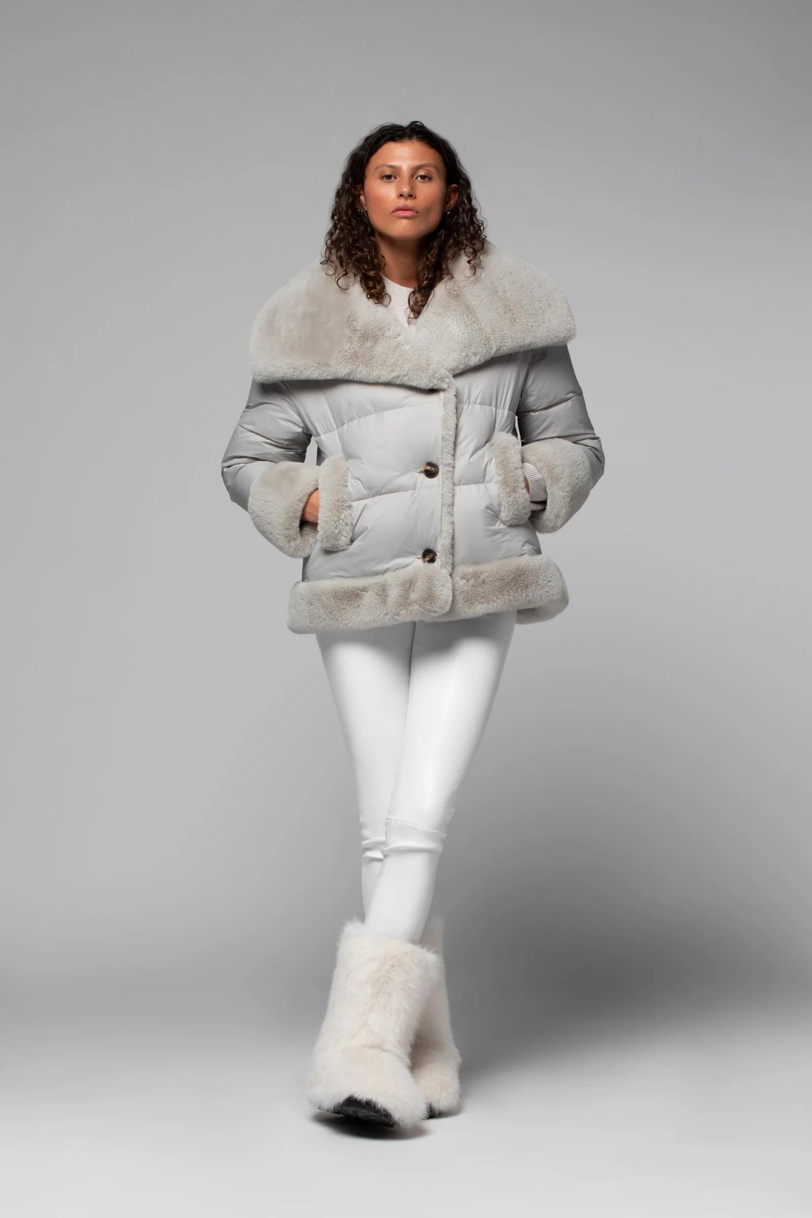 Avec notre doudoune courte DASSI, MAX&MOI propose une version nouvelle et élégante de la doudoune matelassée pour femme. Son atout charme ? De généreux empiècements en fausse fourrure Furever, ultra duveteux, qui rehaussent instantanément l’allure et féminise ses lignes sportwear avec élégance. Son col oversize, sa fermeture légèrement décalée et ses jolis boutons effet corne, aux accents couture, renforcent son caractère affirmé. Pratique, elle dispose de deux poches sur le devant, pour garder tous vos essentiels à portée de main.