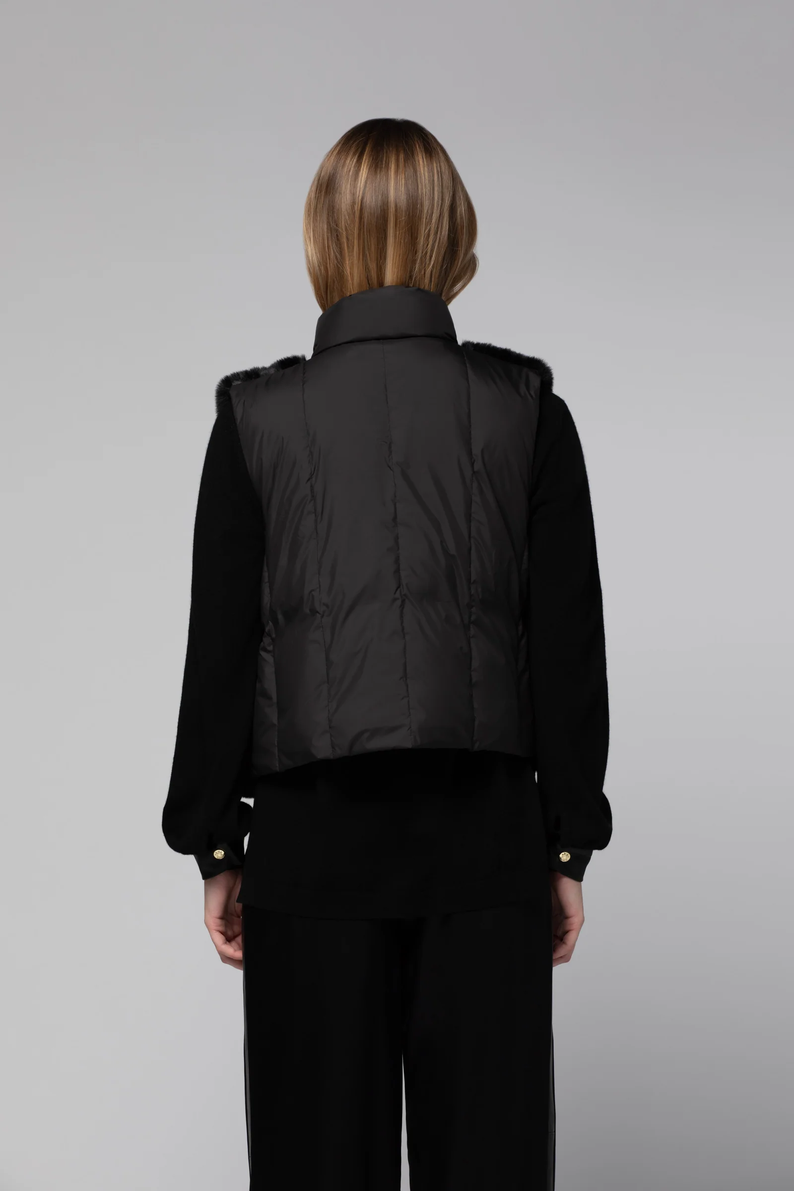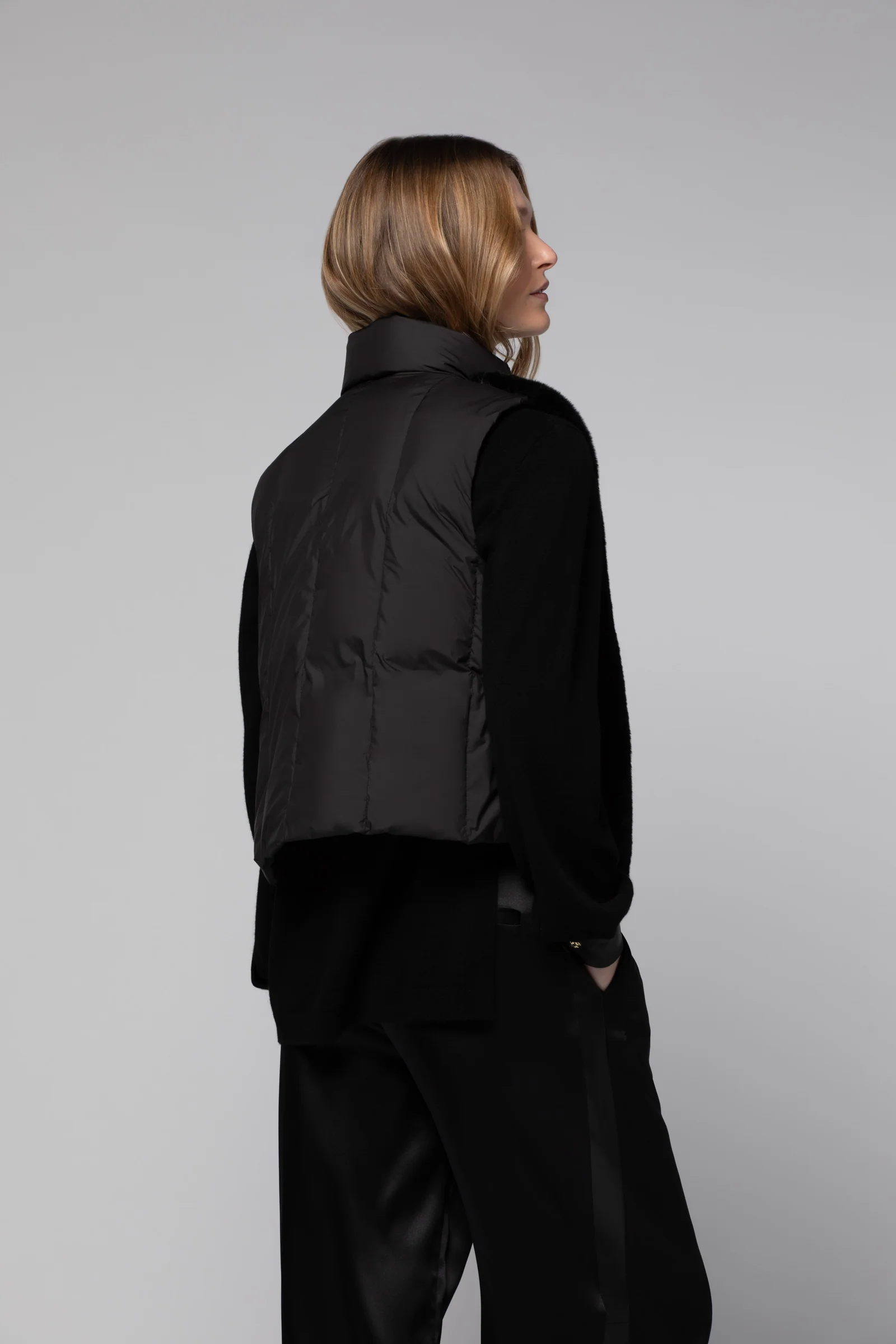 Cette doudoune sans manches pour femme se dévoile en noir et sable.