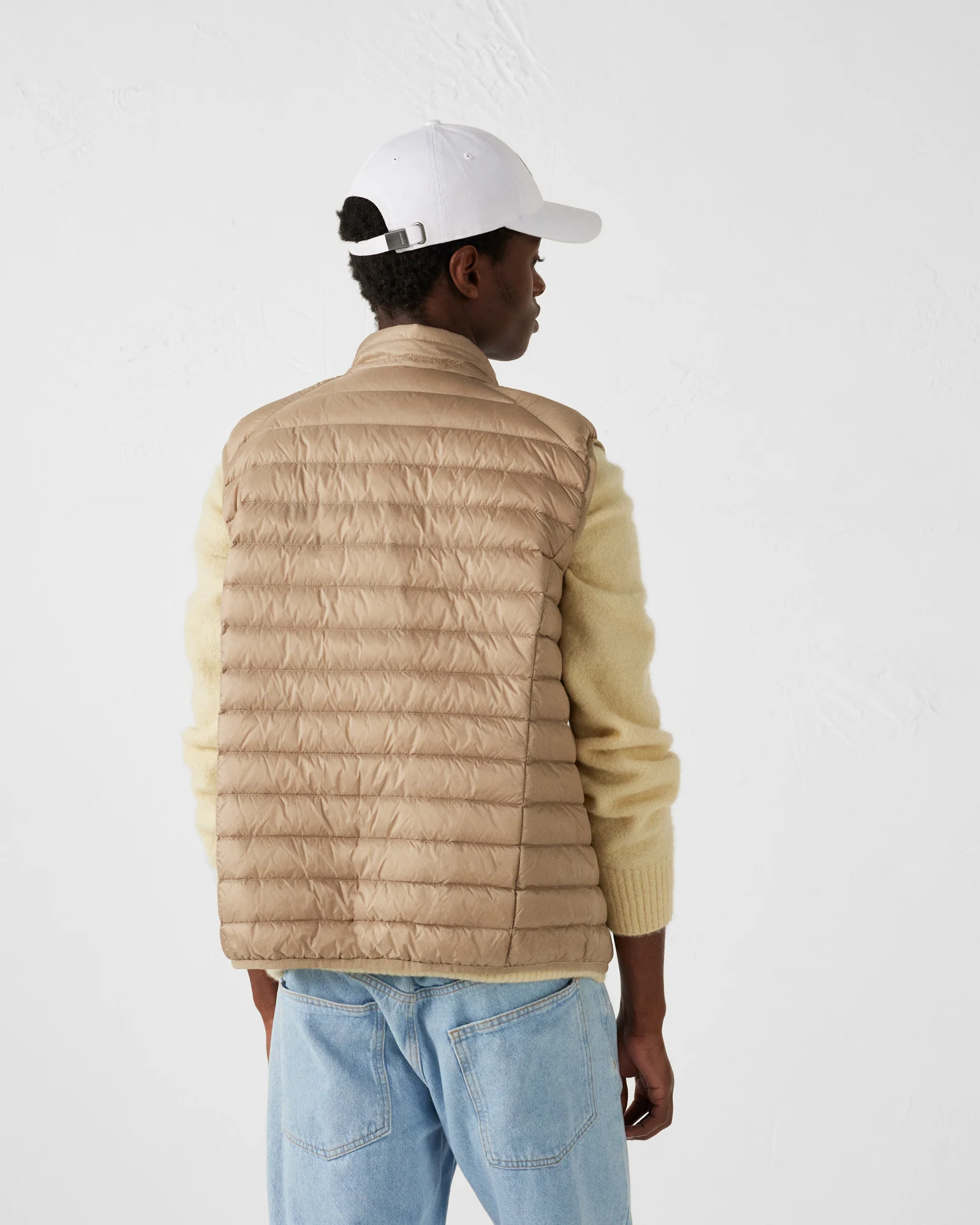 TOM, la doudoune légère sans manches iconique à petit col montant. Un must have à glisser sous toutes les vestes.
