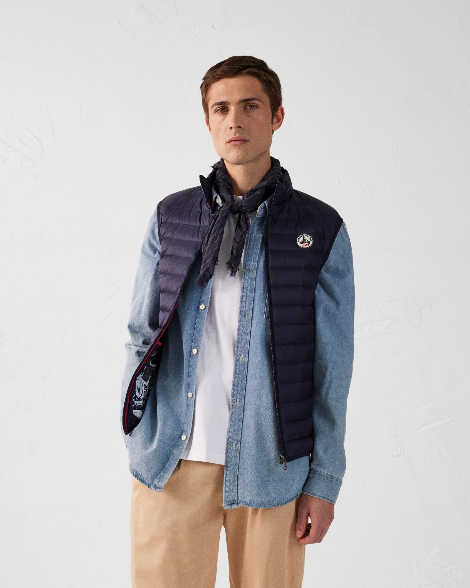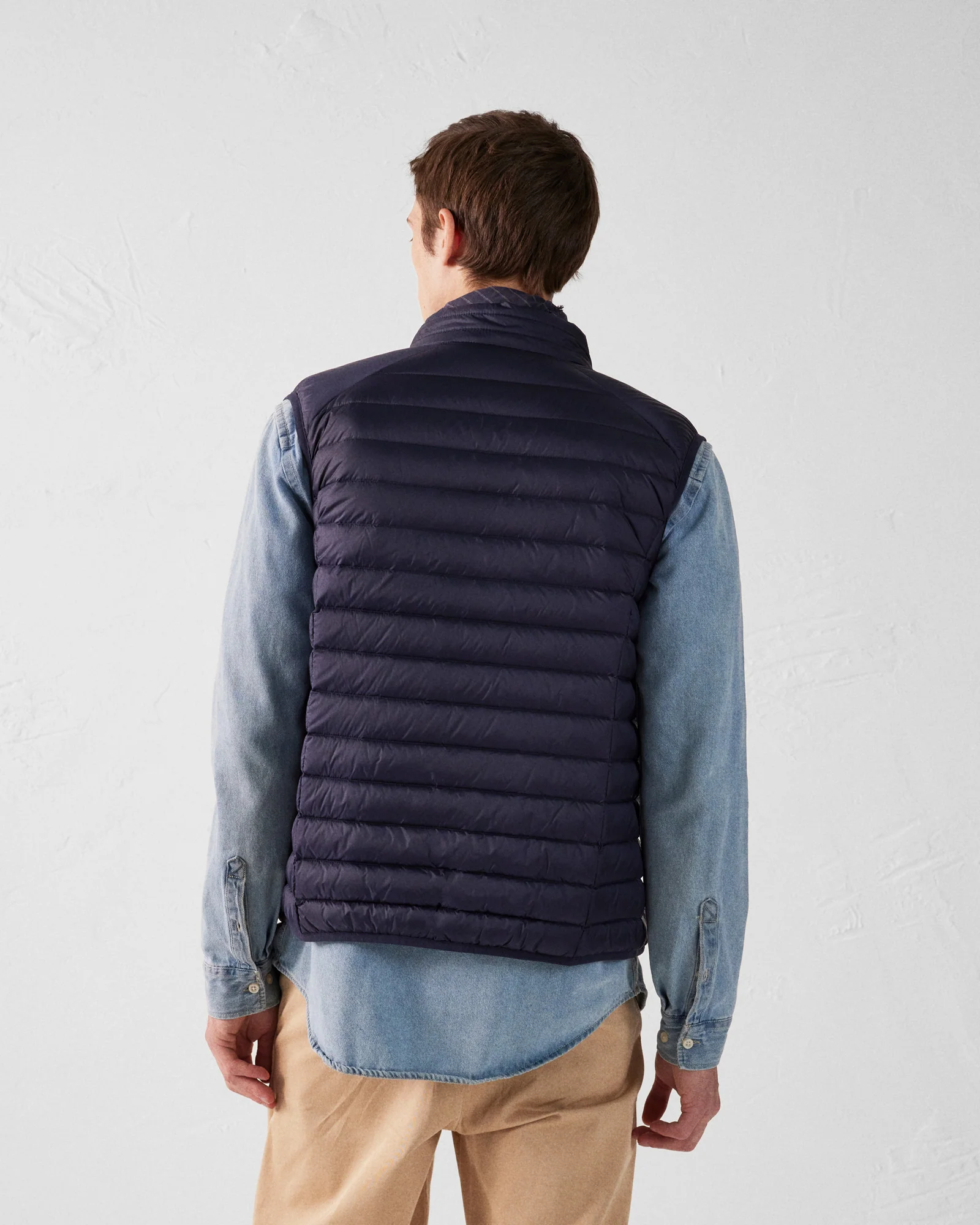 TOM, la doudoune légère sans manches iconique à petit col montant. Un must have à glisser sous toutes les vestes.