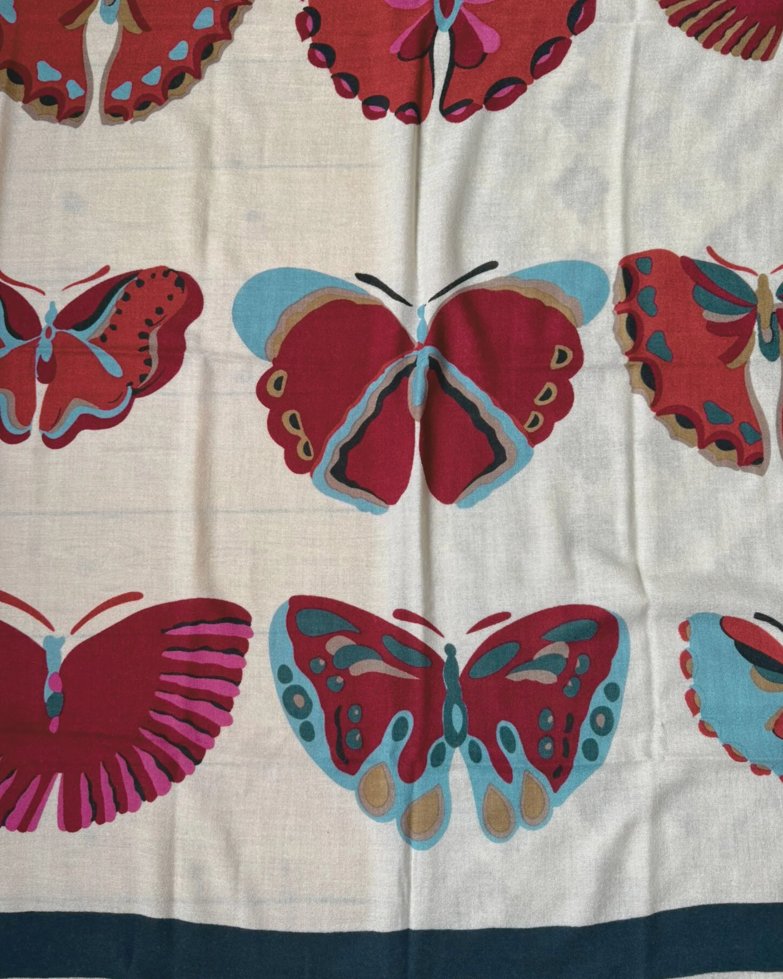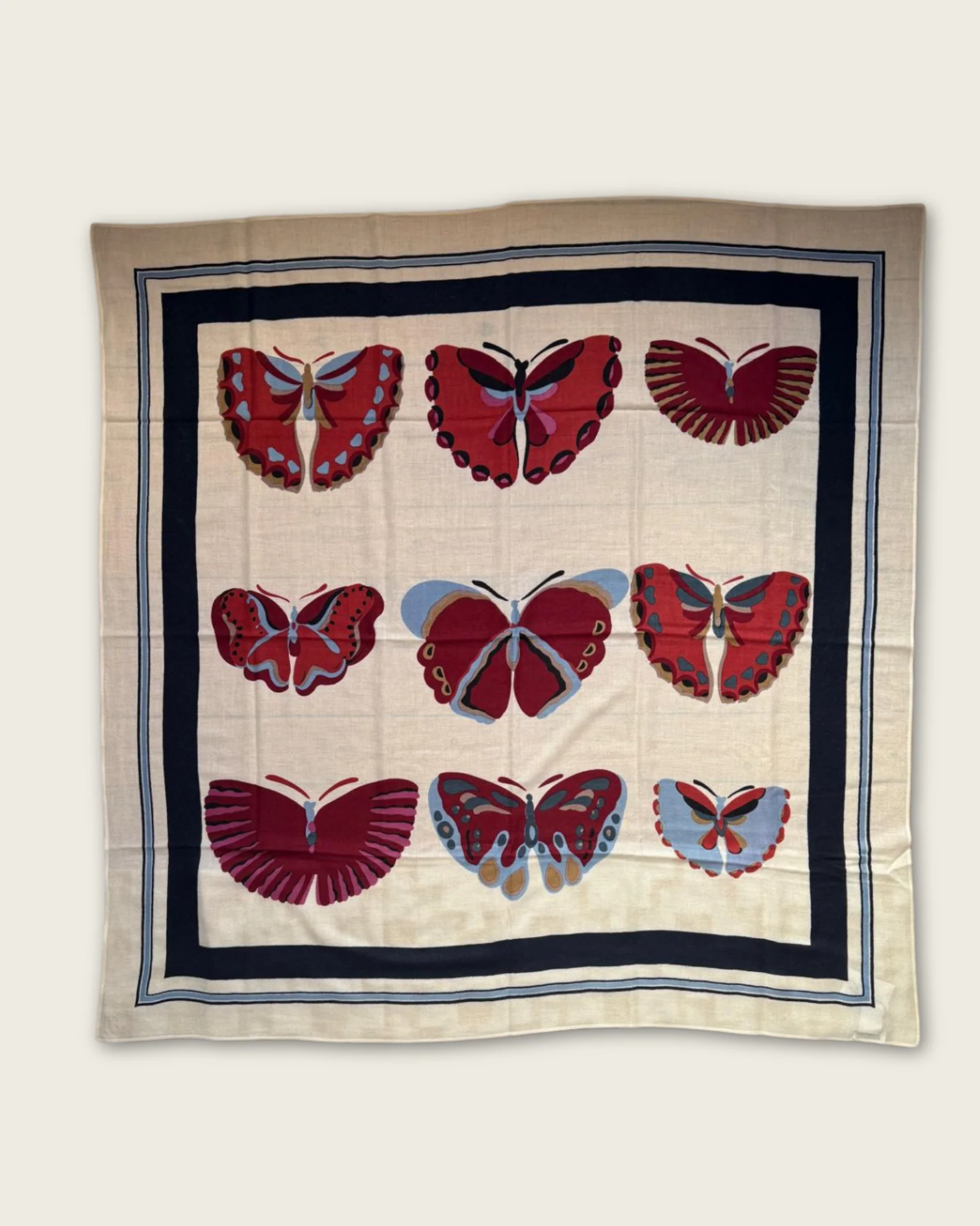 Délicat et raffiné, ce carré Éric Bompard est confectionné en 100 % cachemire, une matière d’exception reconnue pour sa douceur incomparable et sa légèreté enveloppante. Son fond écru, sublimé par de fins motifs papillons, apporte une touche poétique et élégante à cet accessoire intemporel.