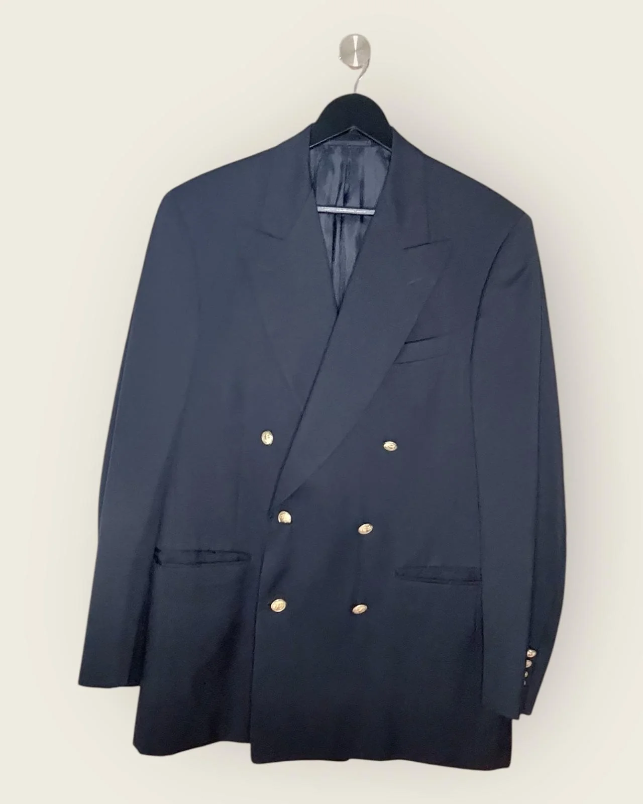 Veste croisée à 6 boutons FACONNABLE, en seconde main. Cette veste est la pièce vintage incontournable dans le dressing d’un gentleman mais aussi une option très à la mose. Confectionnée en 100% laine vierge, cette pièce, fabriquée en Italie, est d’une très belle qualité.