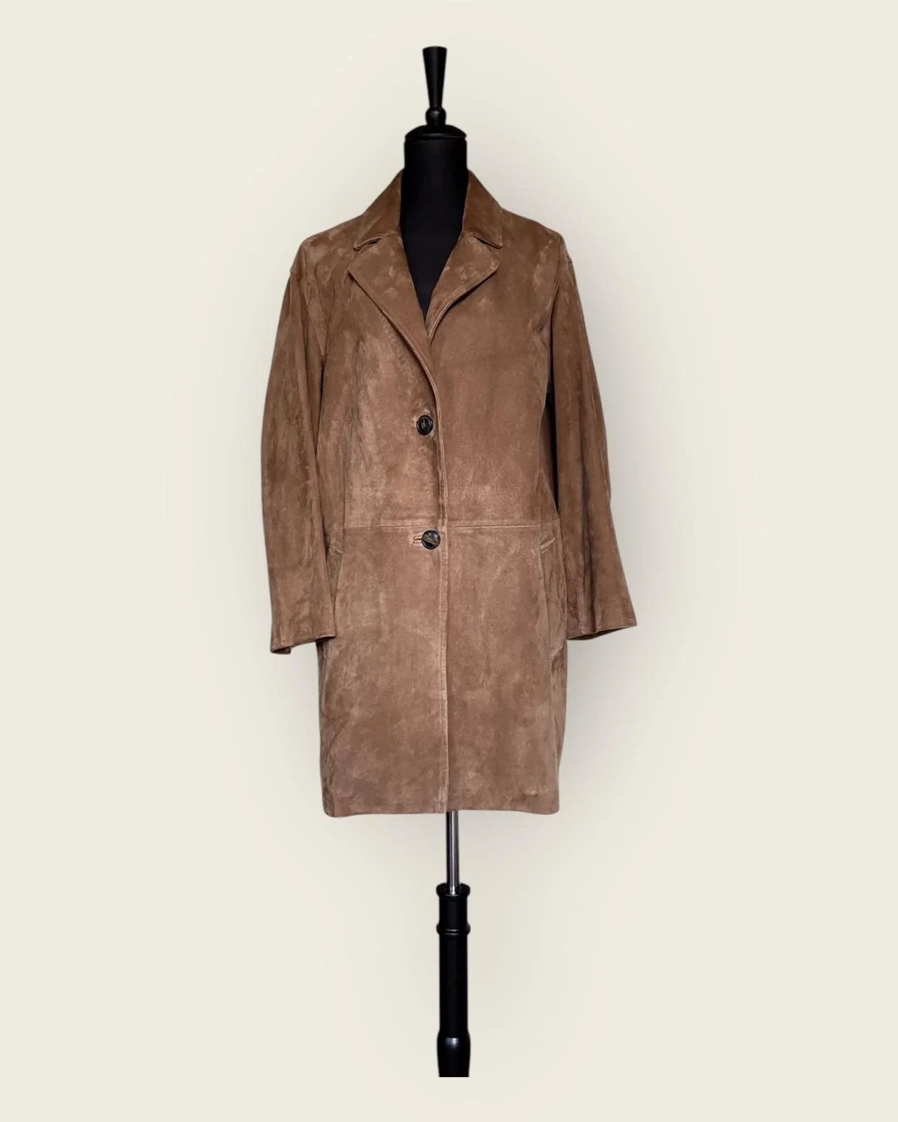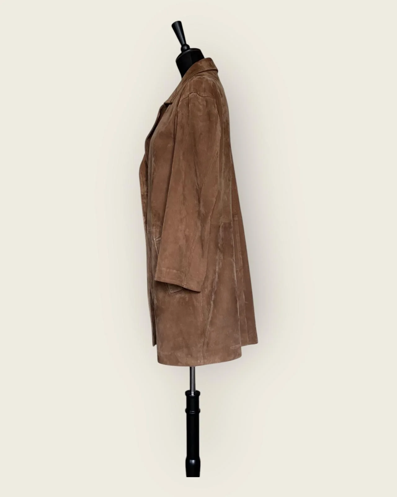 Veste mi-longue en cuir velours GERARD DAREL de seconde main. Sa matière noble en cuir velours lui confère une haute qualité et un toucher très doux. Sa forme droite accueille deux poches plaquées sur les côtés, un col tailleur et se ferme par boutons. Parfaite pour la demi-saison.