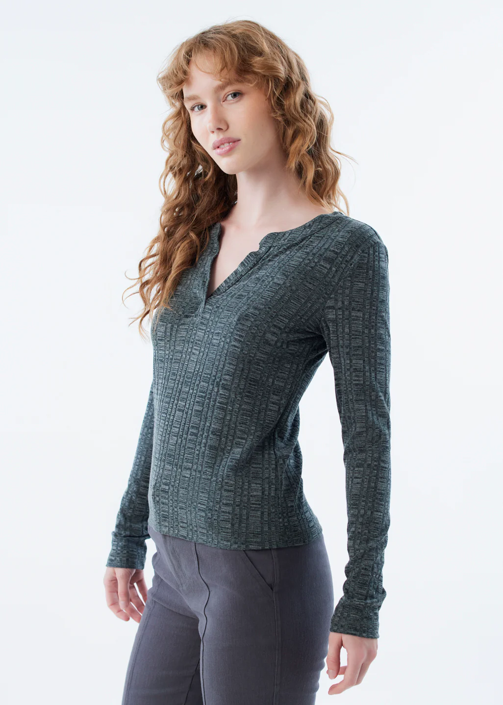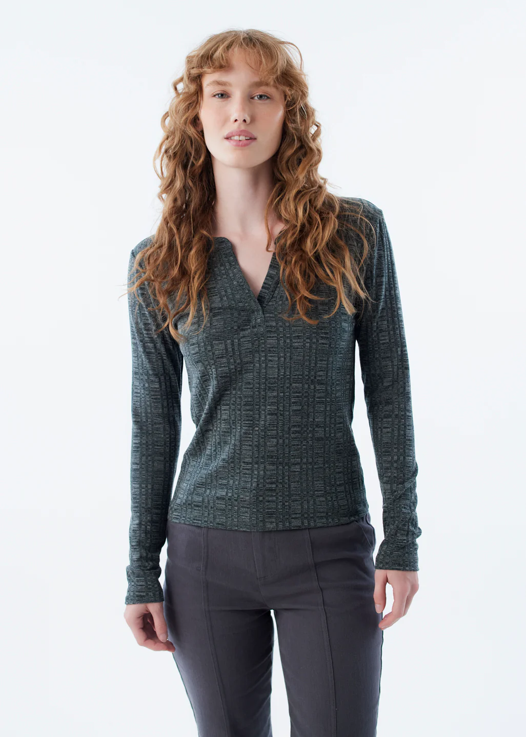 Ce haut henley met en valeur votre silhouette grâce à sa coupe près du corps et son col subtilement ouvert. Les manches longues et le tombé ajusté en font une pièce facile à adopter au quotidien.