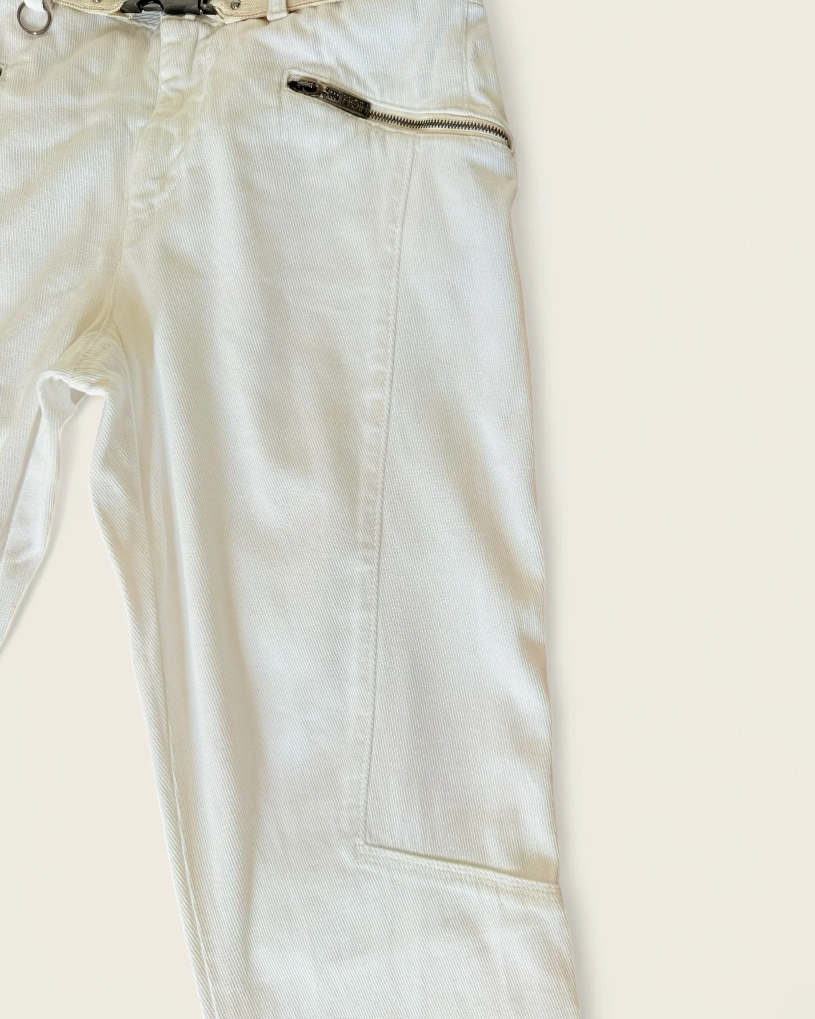 Jean HIGH, en seconde main. Adoptez un style chic et contemporain avec ce jean blanc signé HIGH, une pièce à la fois sophistiquée et confortable. Sa coupe flatteuse et sa ceinture intégrée ajoutent une touche d’originalité et structurent joliment la silhouette. Idéal pour un look élégant en toute occasion.