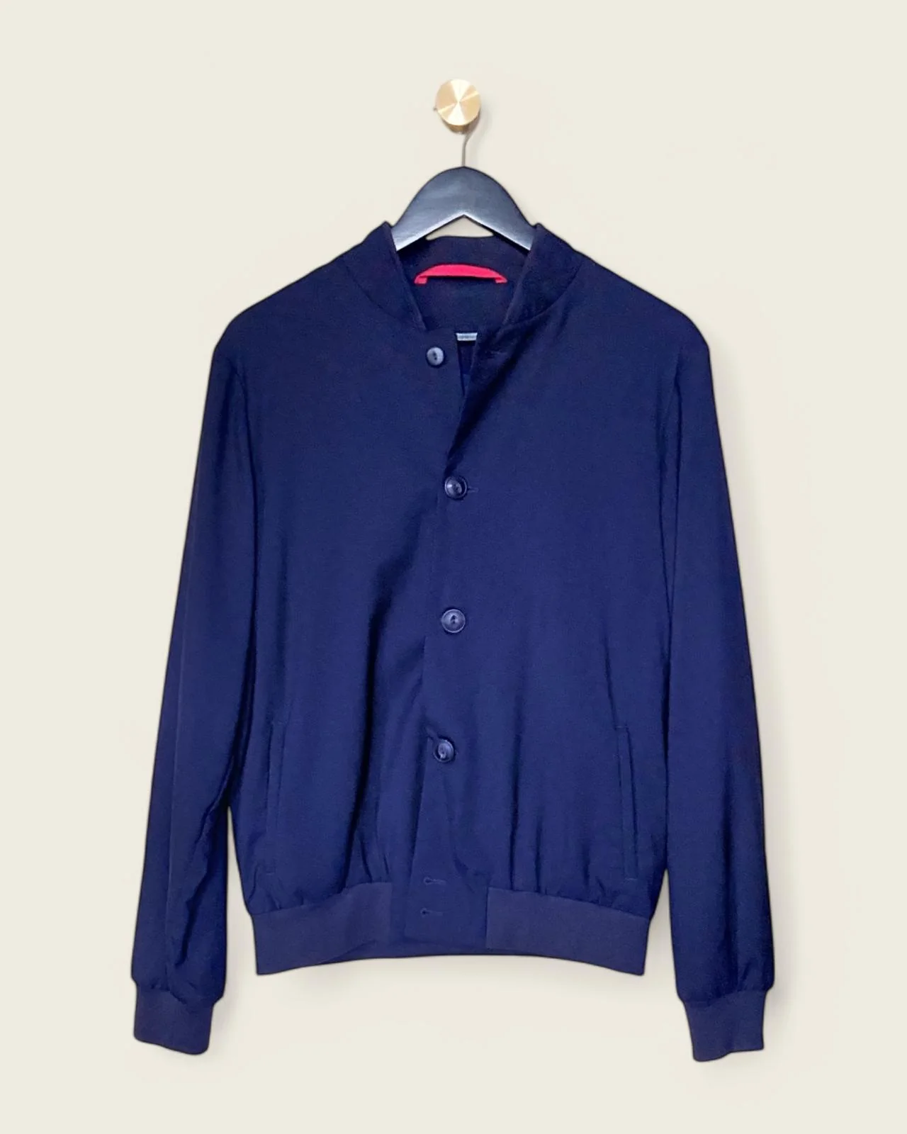 Veste légère et élégante de la marque HOMECORE, confectionnée en 100% laine, en seconde main. Couleur noire intemporelle, idéale pour la mi-saison. Pièce en excellent état, très peu portée – comme neuve. Un incontournable du vestiaire masculin, alliant confort et style, en version seconde main.