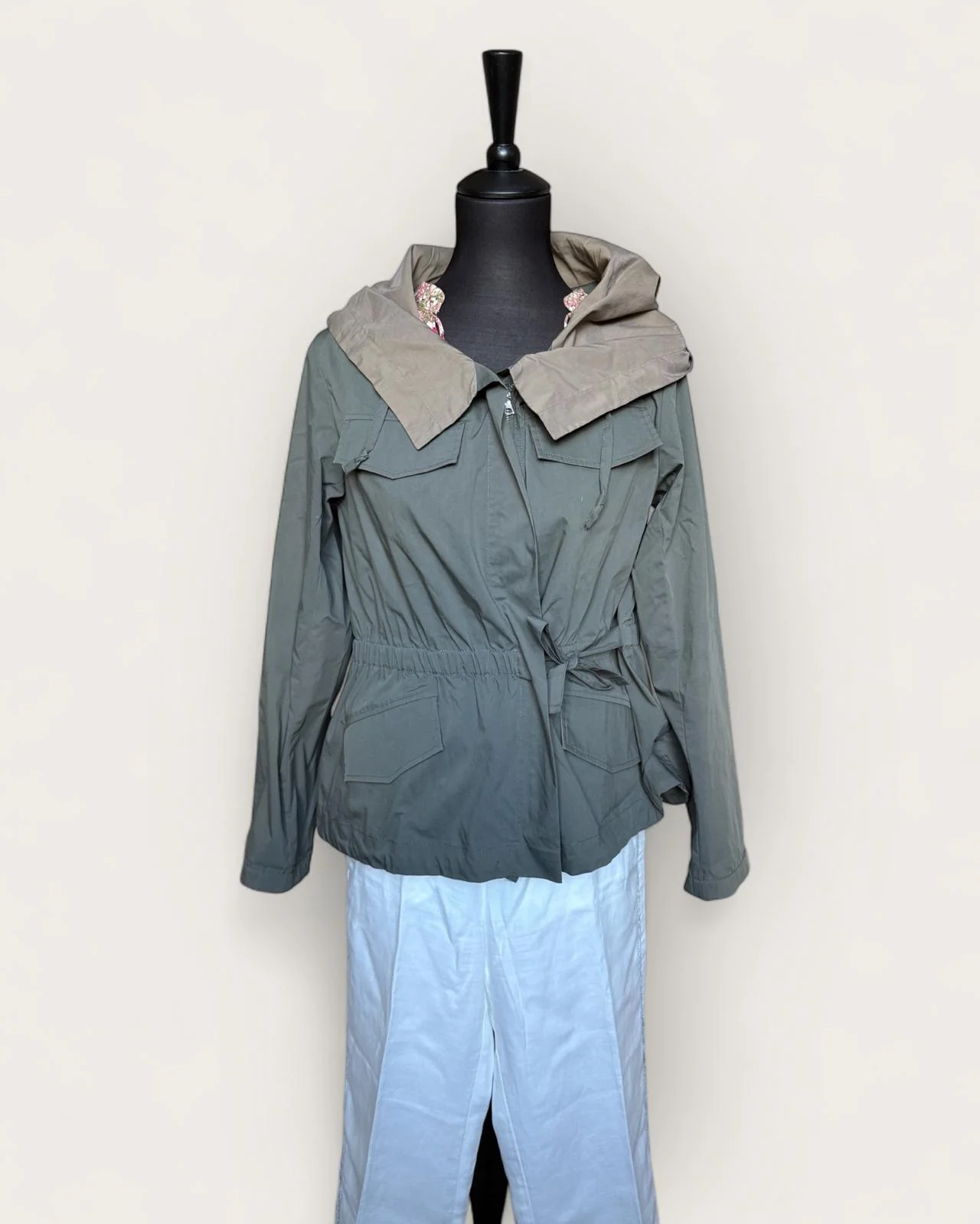 Adoptez un look casual-chic avec cette veste courte kaki de la marque Lola, un trench seconde main au charme intemporel. Sa coupe ample se resserre élégamment à la taille grâce à deux rubans latéraux, rappelant le style trench court femme seconde main. Dotée d’une capuche pratique, cette veste coupe-vent femme seconde main allie confort et style pour vous accompagner en toute saison. Polyvalente, elle s’associe facilement à toutes vos tenues, faisant de cette veste pour femme un indispensable de votre dressing.