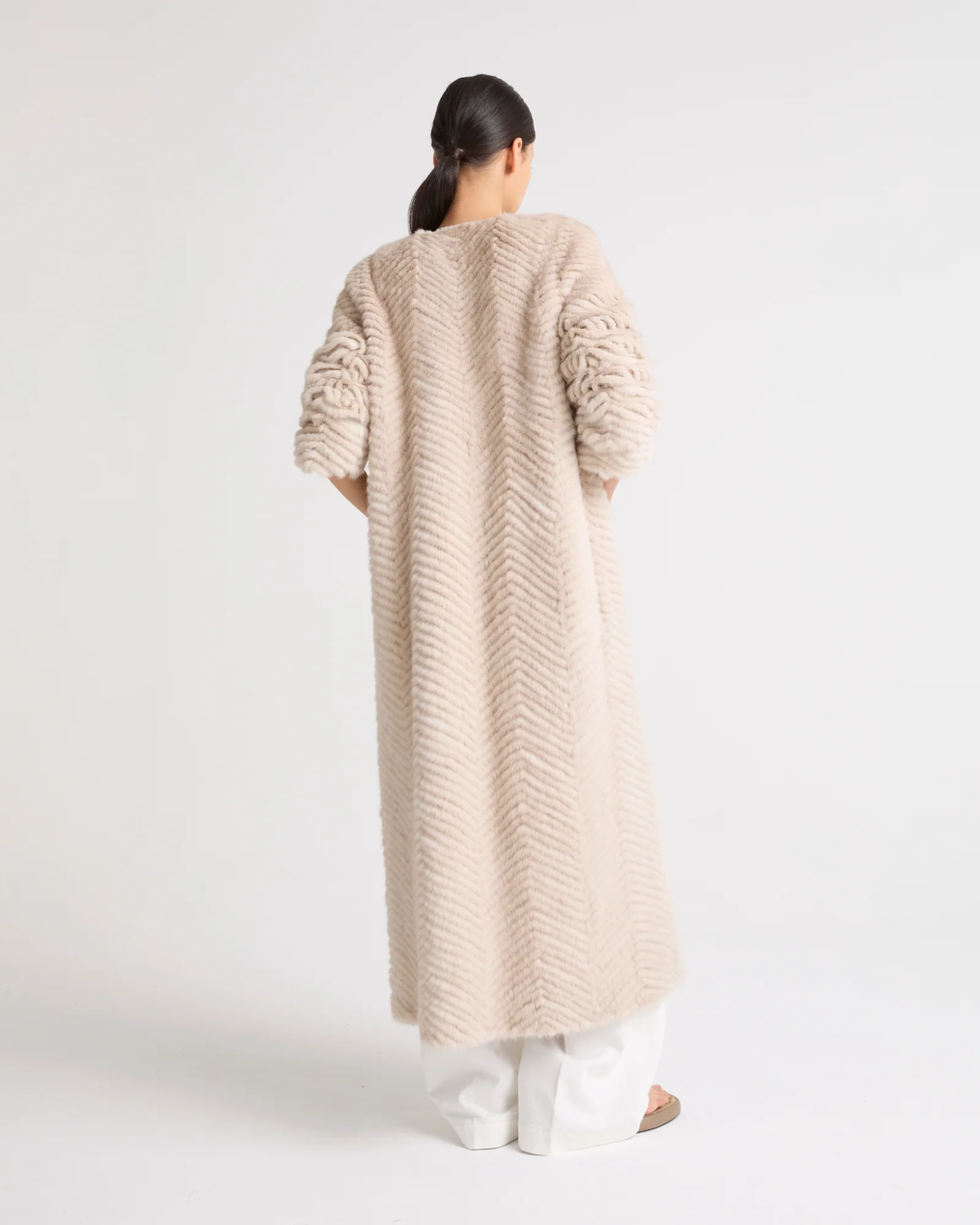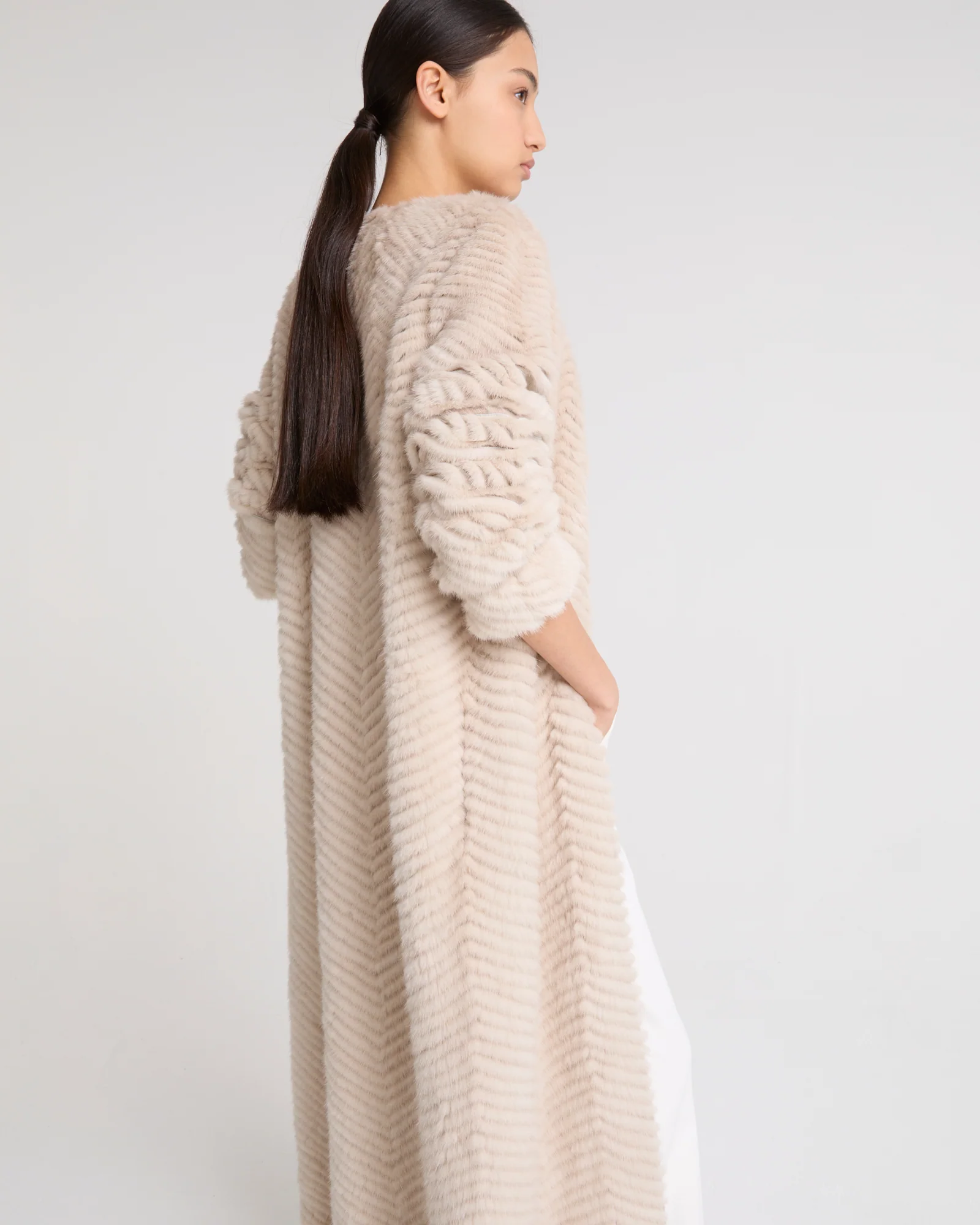Long mink and knit coat