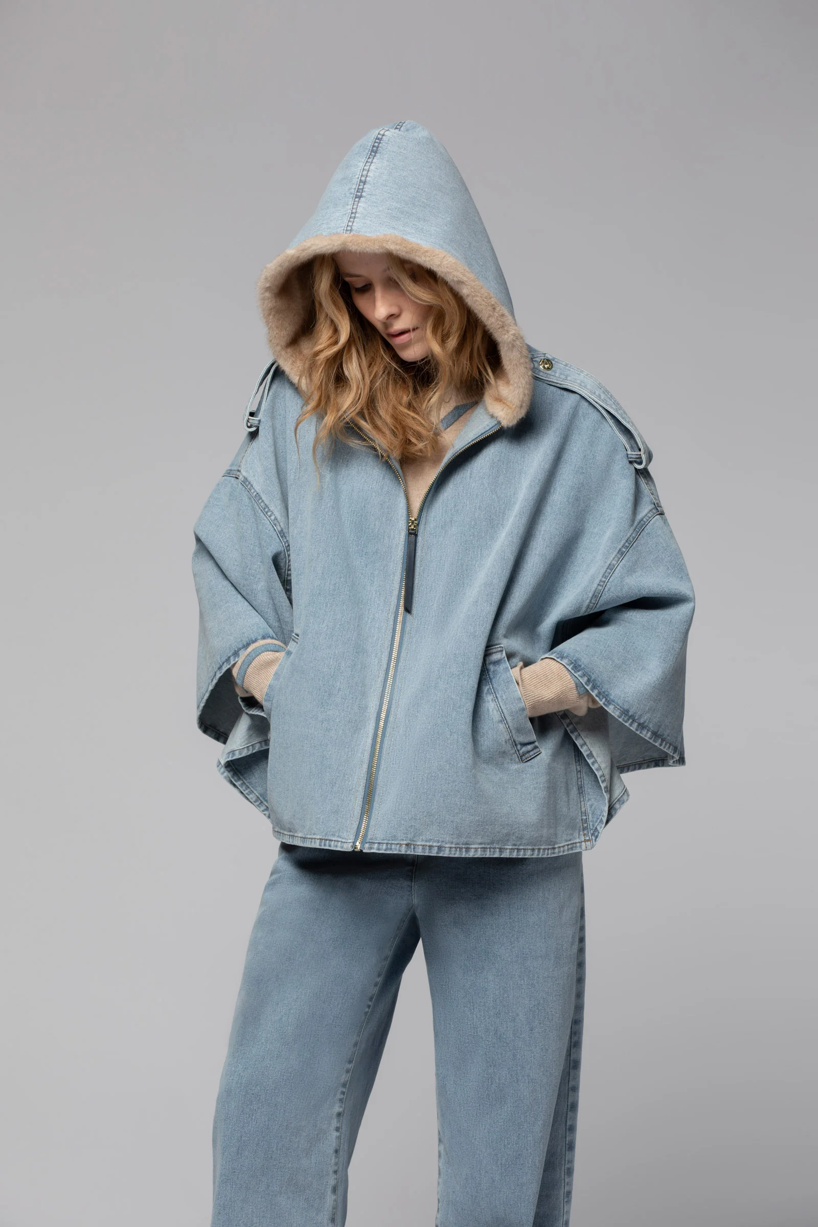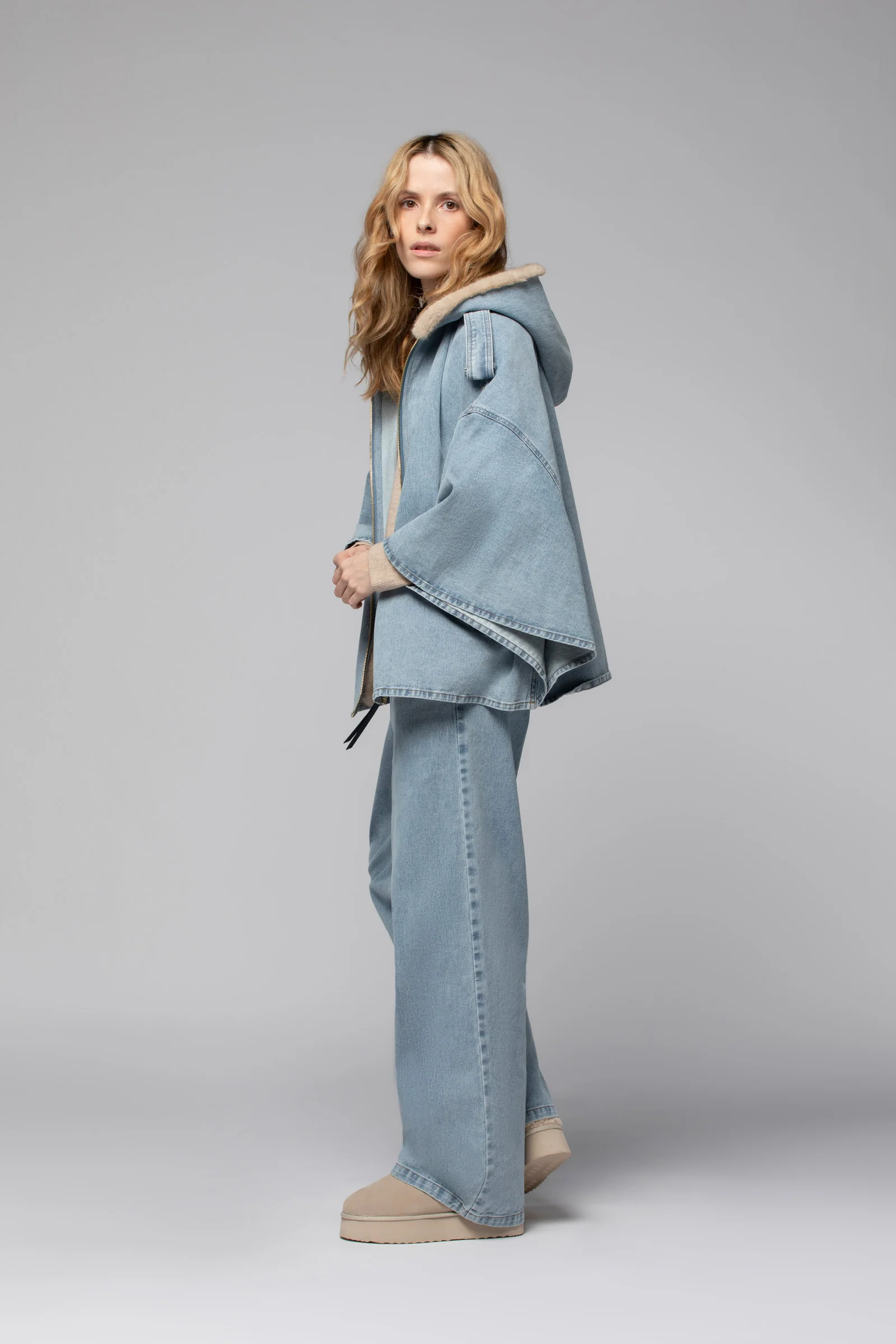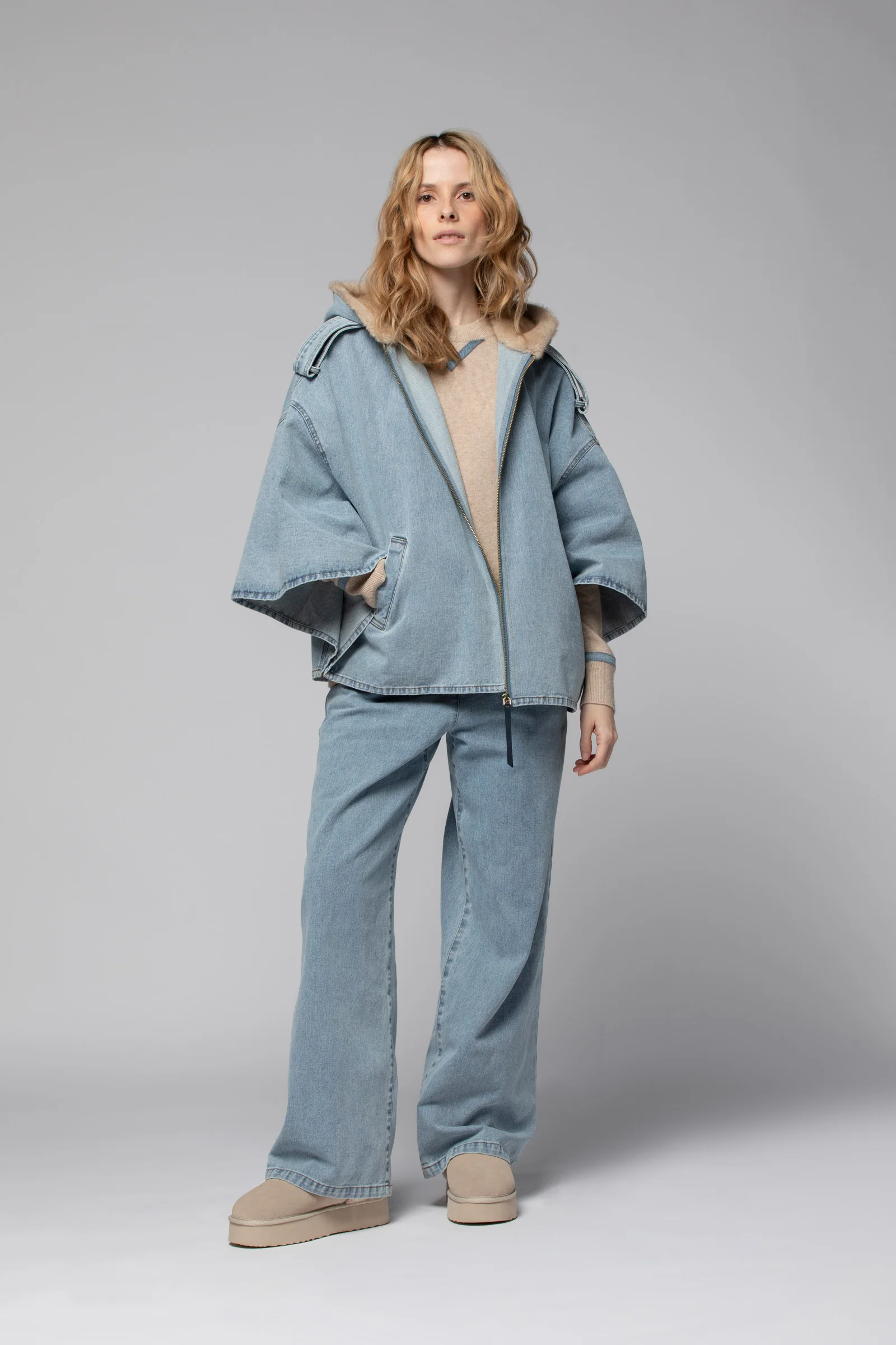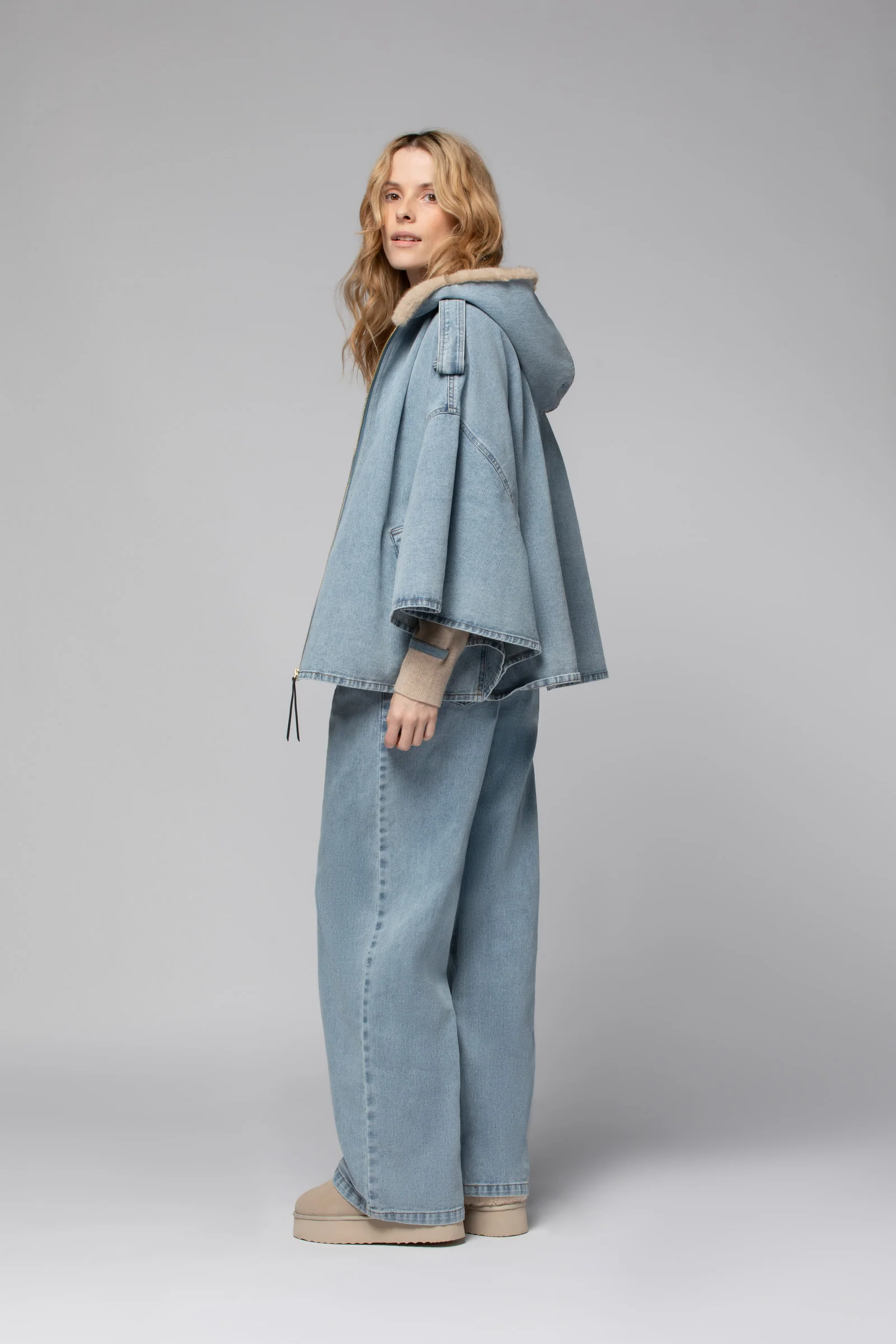 Confectionné dans un superbe denim 100% coton, notre poncho VANDA affiche une allure résolument contemporaine. Sa coupe ample s’associe à de larges emmanchures zippées, qui révèlent tout le savoir-faire de cette pièce versatile : portées fermées ou ouvertes, elles permettent de moduler la silhouette au gré de vos envies. Idéal pour la mi-saison, ce poncho cape se distingue par sa capuche généreuse, doublée d’une fausse fourrure à la texture incroyablement duveteuse. Elle s’ajuste d’un geste grâce à une fermeture zippée, rehaussée d’une longue tirette graphique en cuir. Surpiqures apparentes, patte d’épaules et boutons signatures MAX&MOI viennent parfaire le modèle.