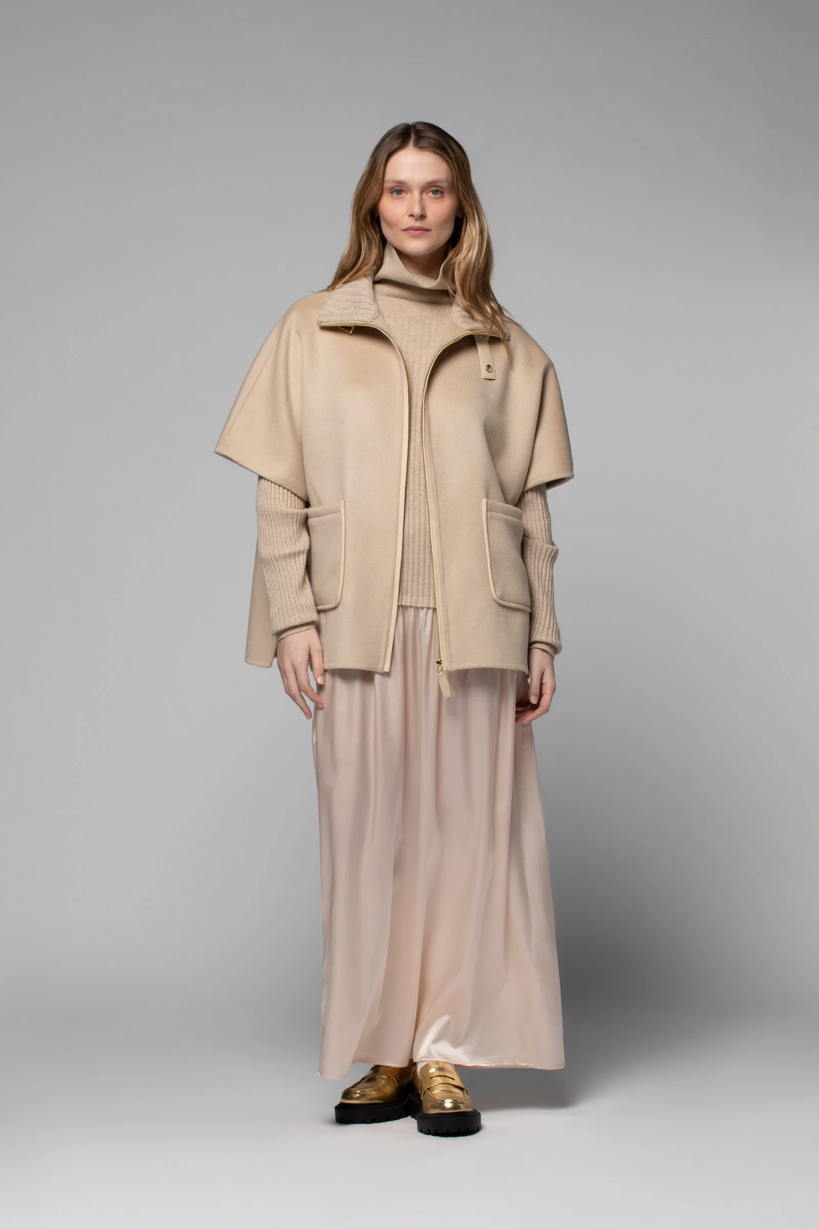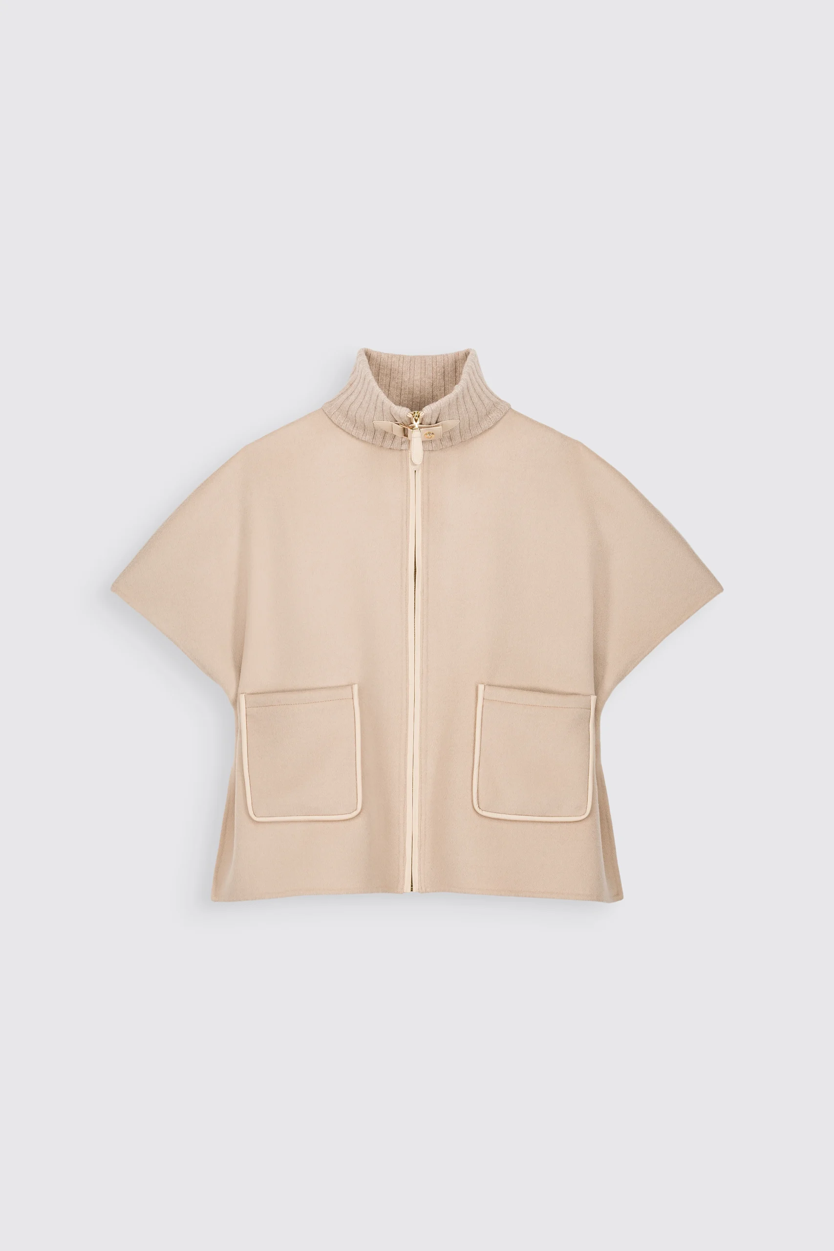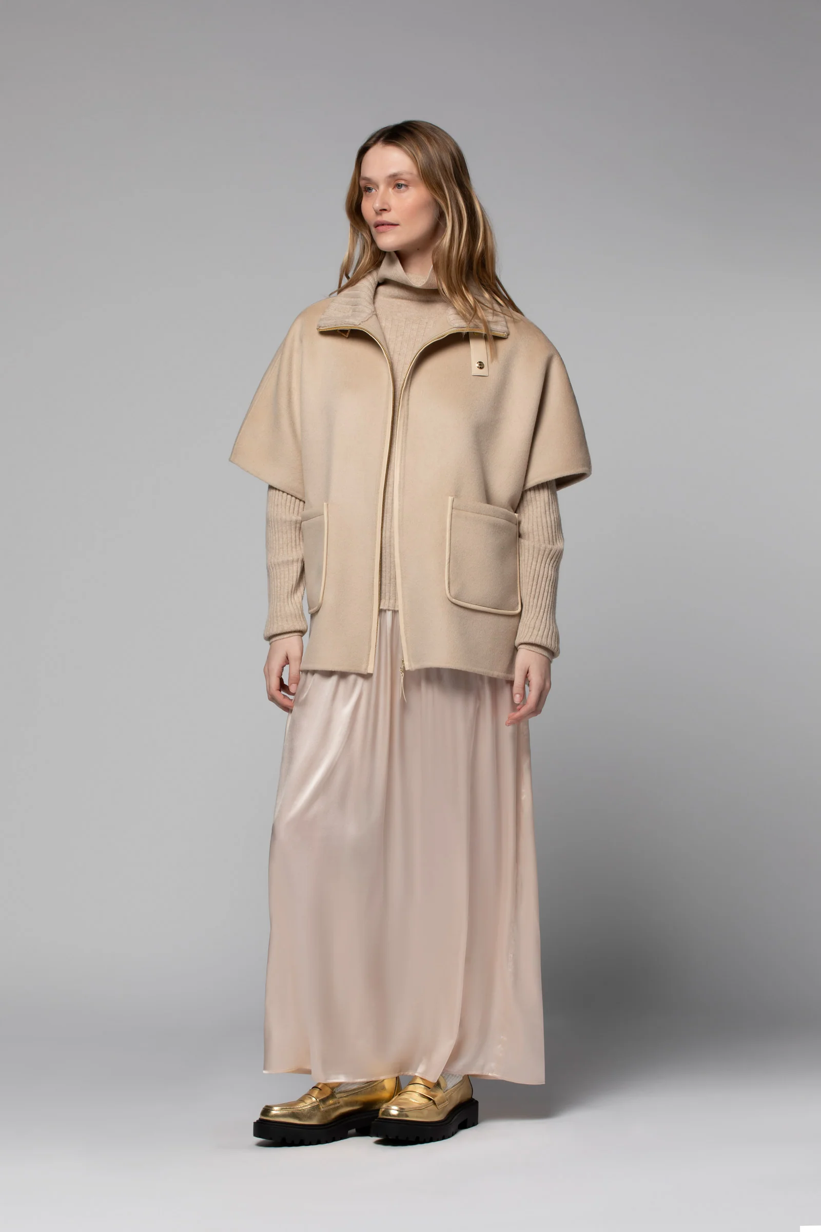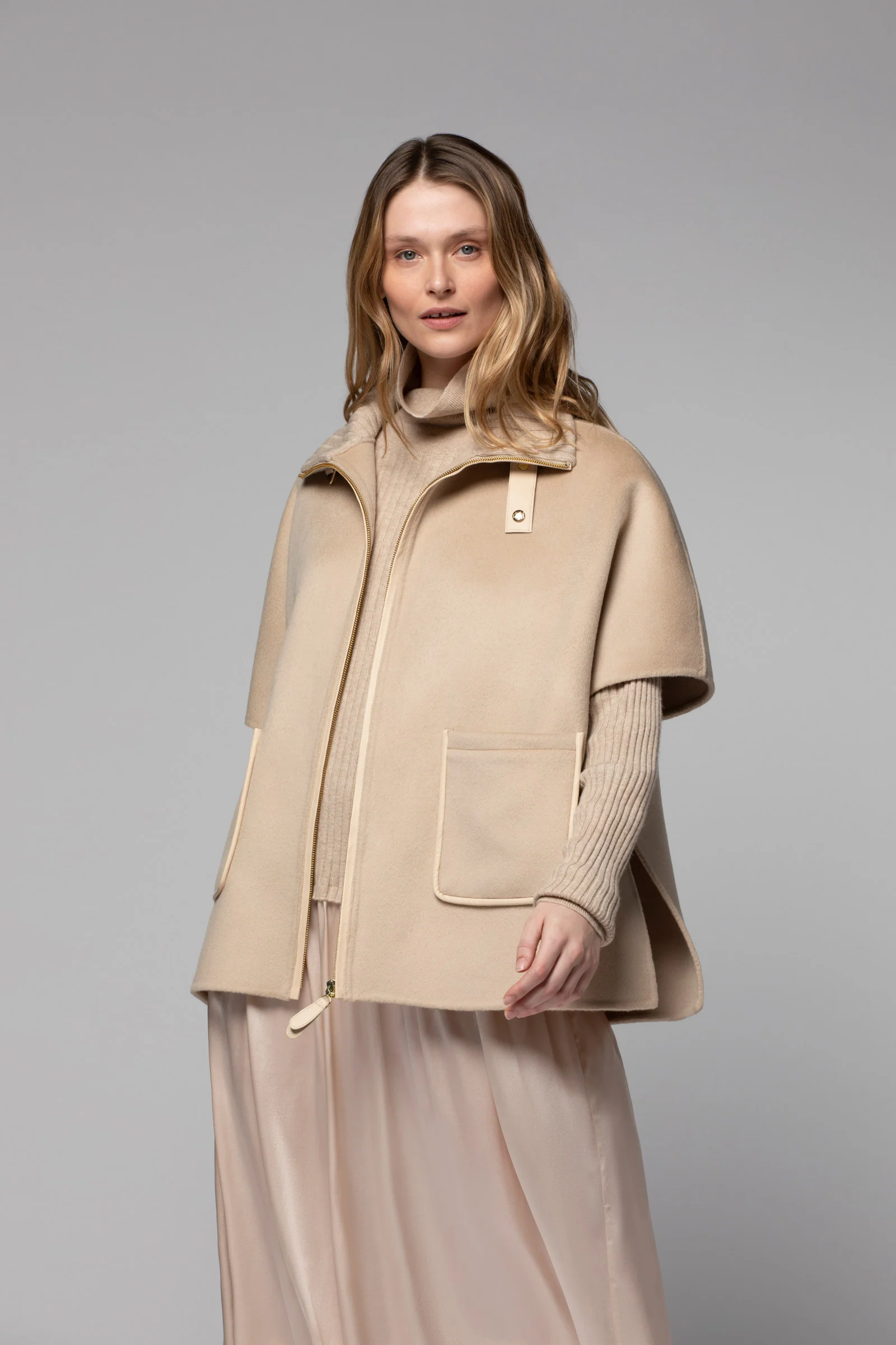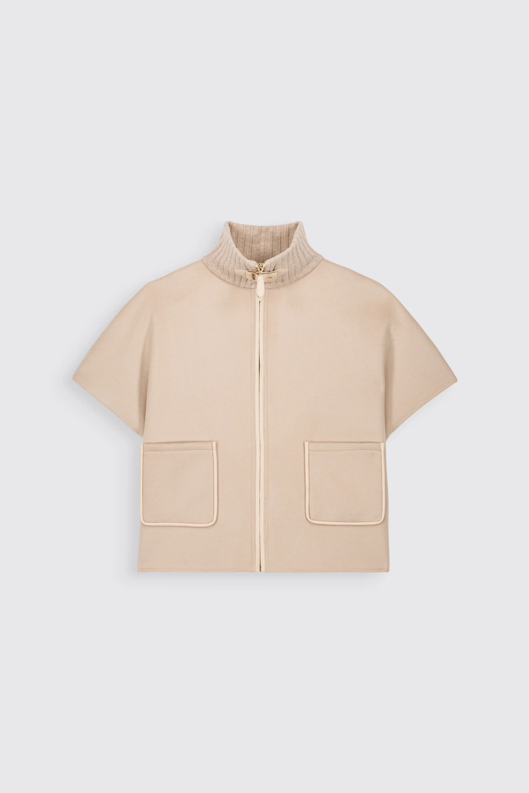 Parfaite pour la mi-saison, notre veste en laine double-face VOLI enveloppe le corps avec douceur. Manches courtes, coupe ample et larges fentes latérales : cette veste façon poncho incarne une allure à l’élégance décontractée. Elle multiplie les détails sophistiqués avec son col montant en maille côtelée, rehaussée d’une élégante patte boutonnée, et ses poches plaquées bordées de cuir. L’allure se module au gré de vos envies grâce à une fermeture zippée discrète.