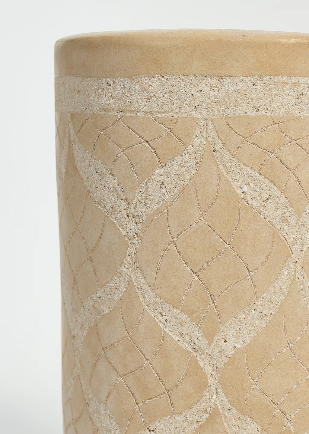 Vase moyen en terre cuite recouverte de Tadelakt avec dessins géométriques gravé sur le vase.