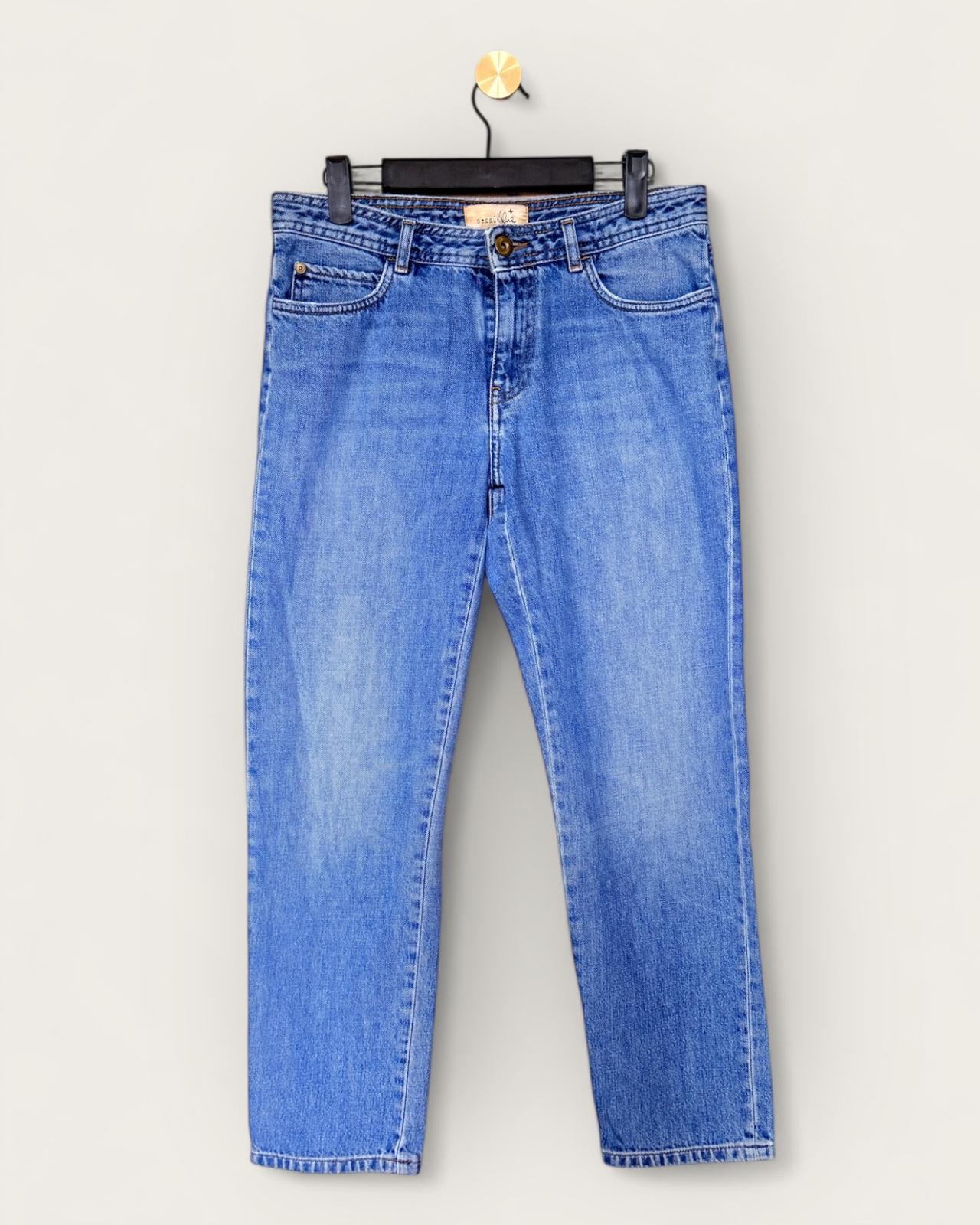 Jean SESSUN, modèle Santi dad, en seconde main. Un denim à l’allure vintage et à la coupe ultra désirable : le modèle Santi Dad de Sessùn revisite le jean droit avec une touche boyish parfaitement maîtrisée. Sa taille haute et sa jambe légèrement ample dessinent une silhouette moderne, décontractée mais toujours féminine. Confectionné dans un denim de qualité au bleu légèrement délavé, il s’accorde aussi bien avec des baskets minimalistes qu’avec des bottines à talons pour un look plus affirmé. Une pièce intemporelle, fidèle à l’univers authentique et exigeant de Sessùn.