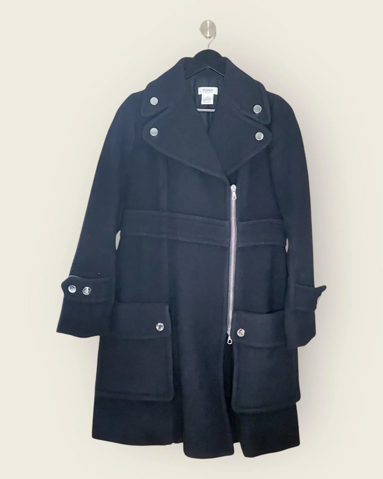 Manteau laine SONIA BY SONIA RYKIEL, en seconde main. Confectionnée de 90% de laine vierge et de 10% en cachemire, cette pièce présente une très belle qualité. Elle pourra vous tenir au chaud tout l’hiver avec style.