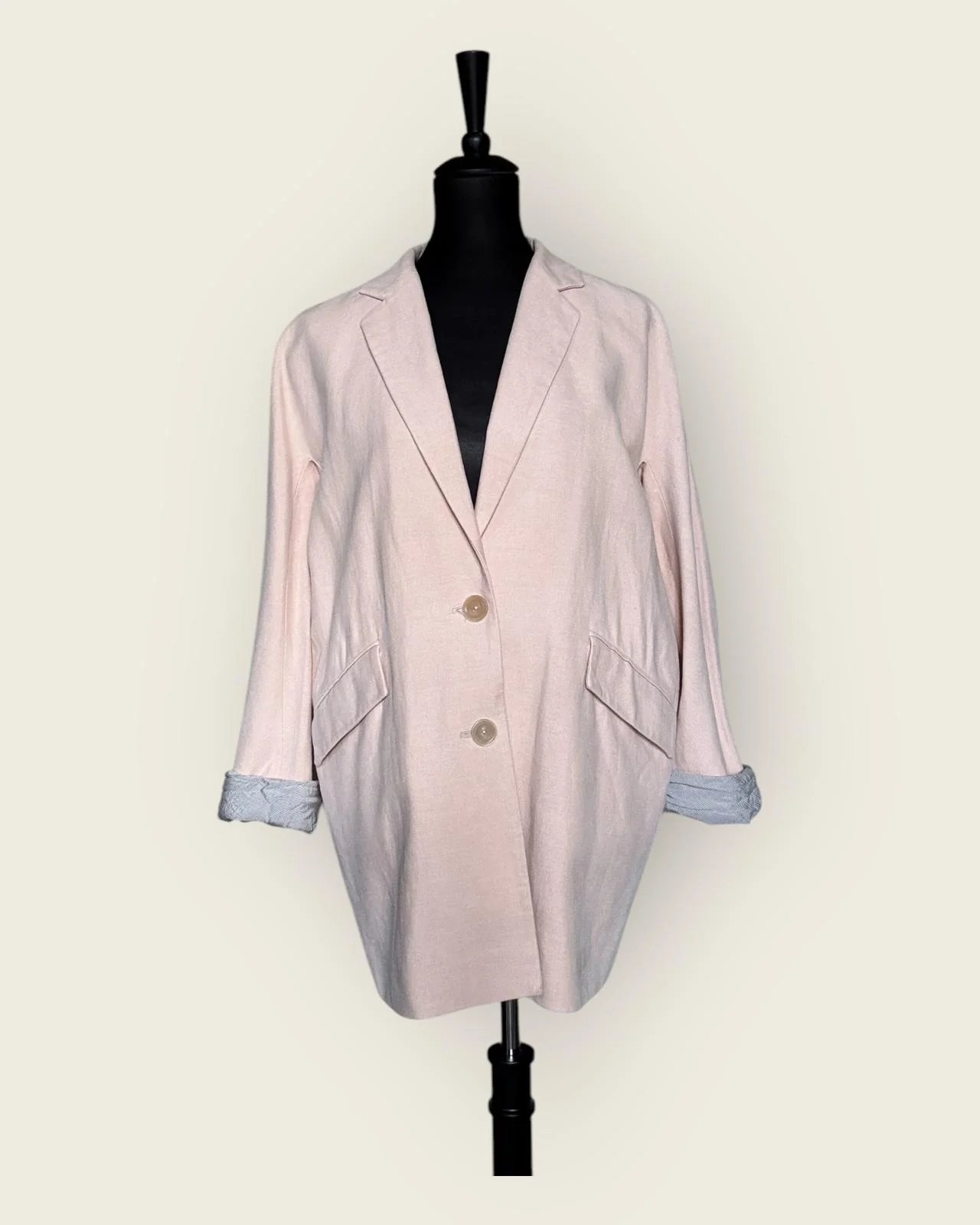 Veste mi-longue ATHE de VANESSA BRUNO, en seconde main. Confectionnée en coton et lin, cette pièce est le partanaire idéal pour entrer dans la saison printanière. Facile à porter, la veste Athé de Vanessa Bruno sera un intemporel de votre dressing.