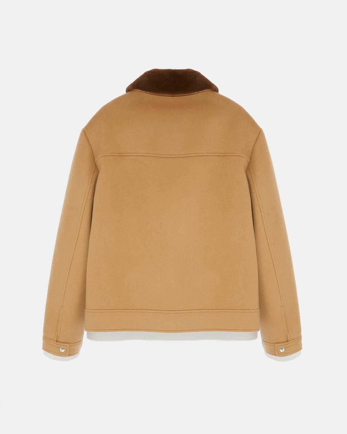 Zipped jacket in double-sided wool-cashmere fabric with mink collar