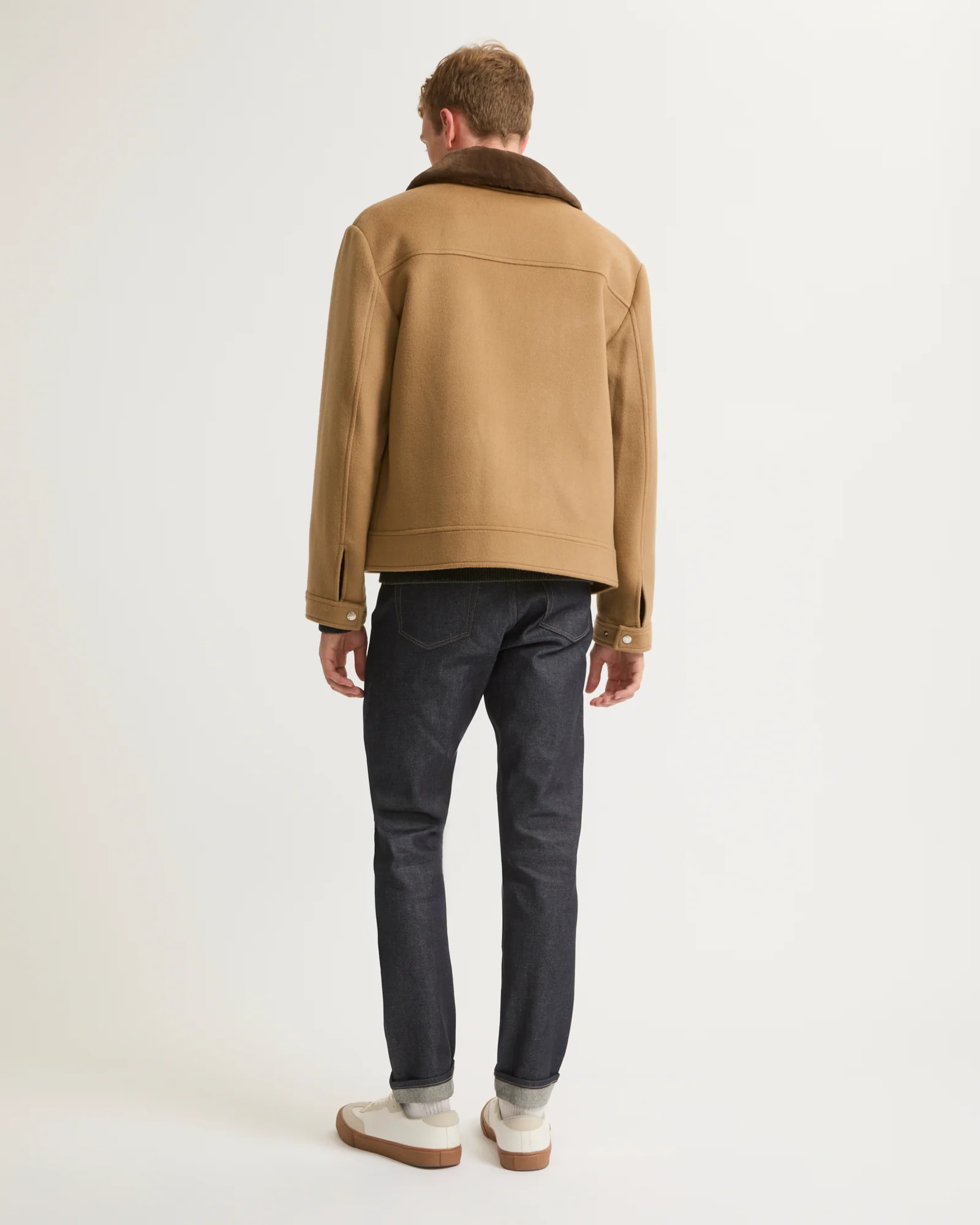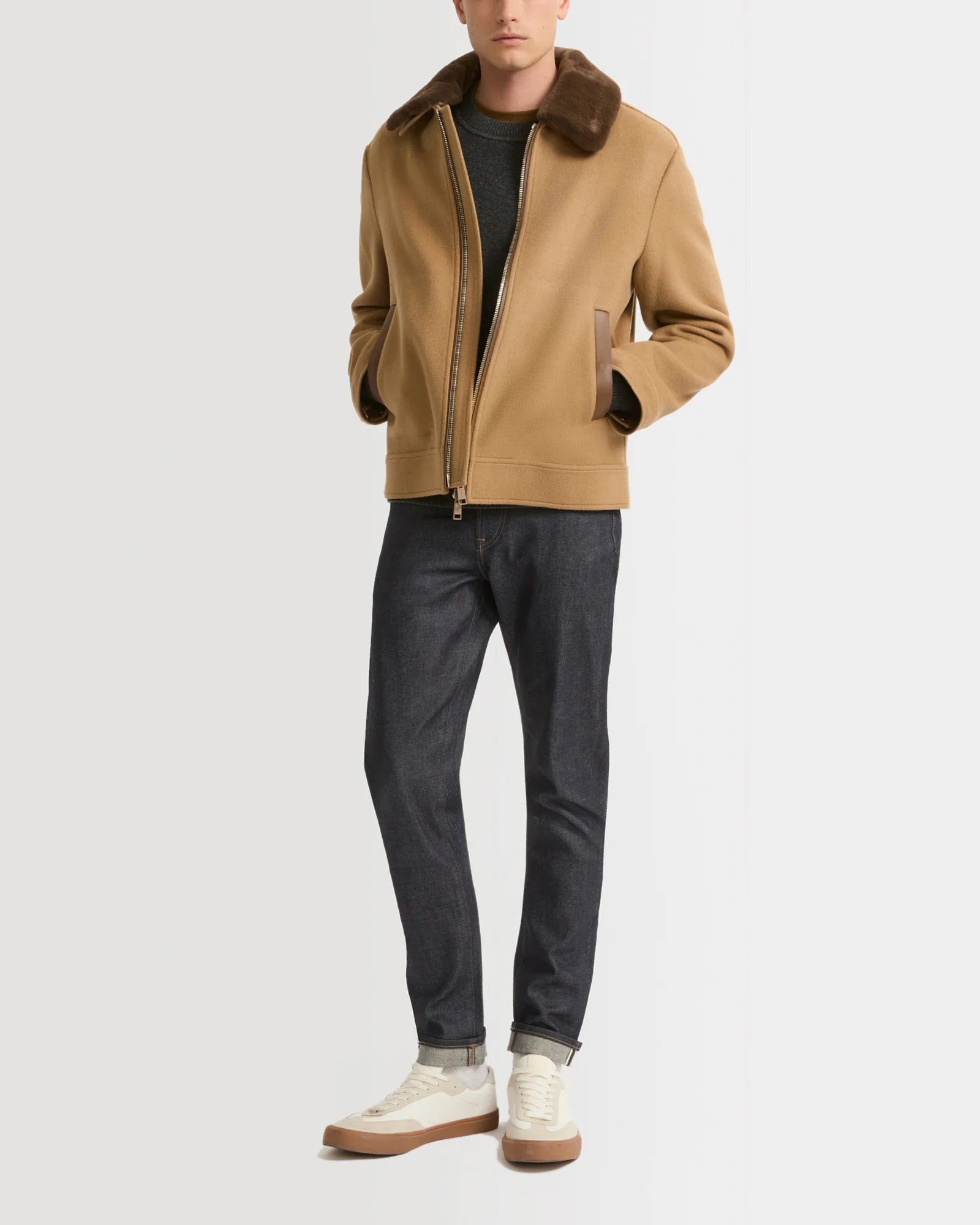 – Leather welt pocket, zip protective lips and under collar